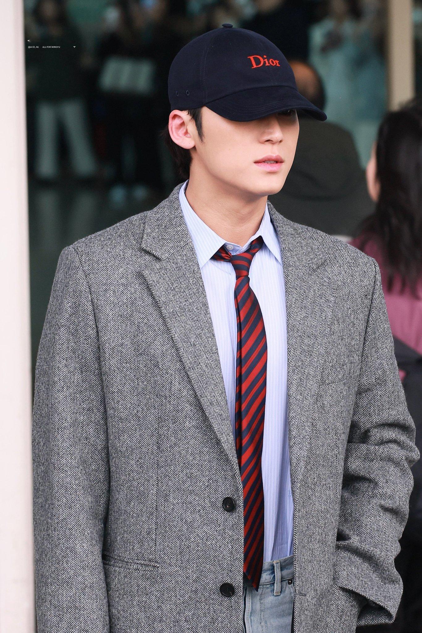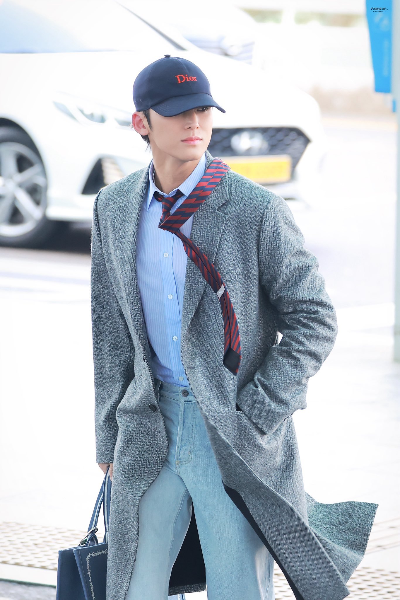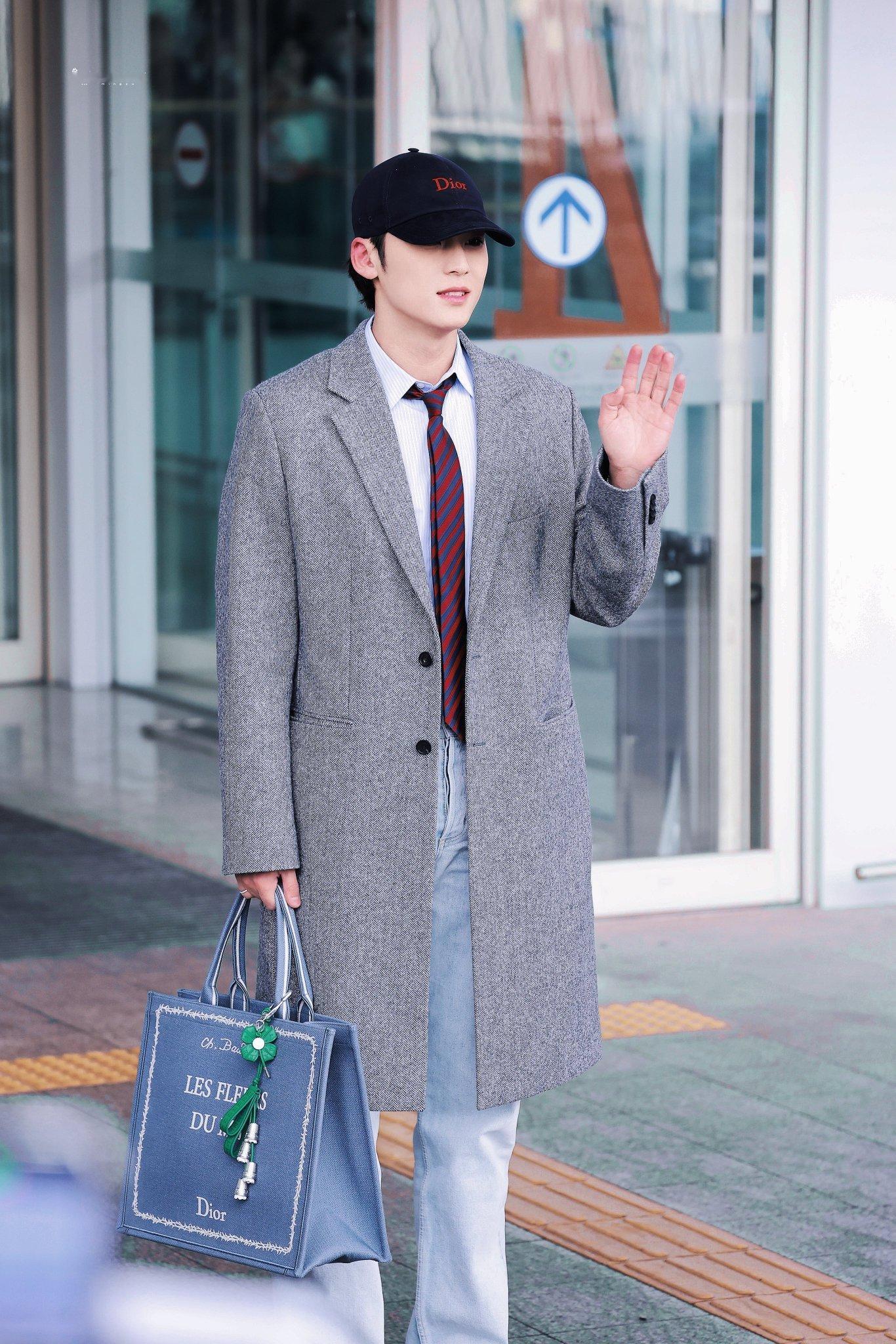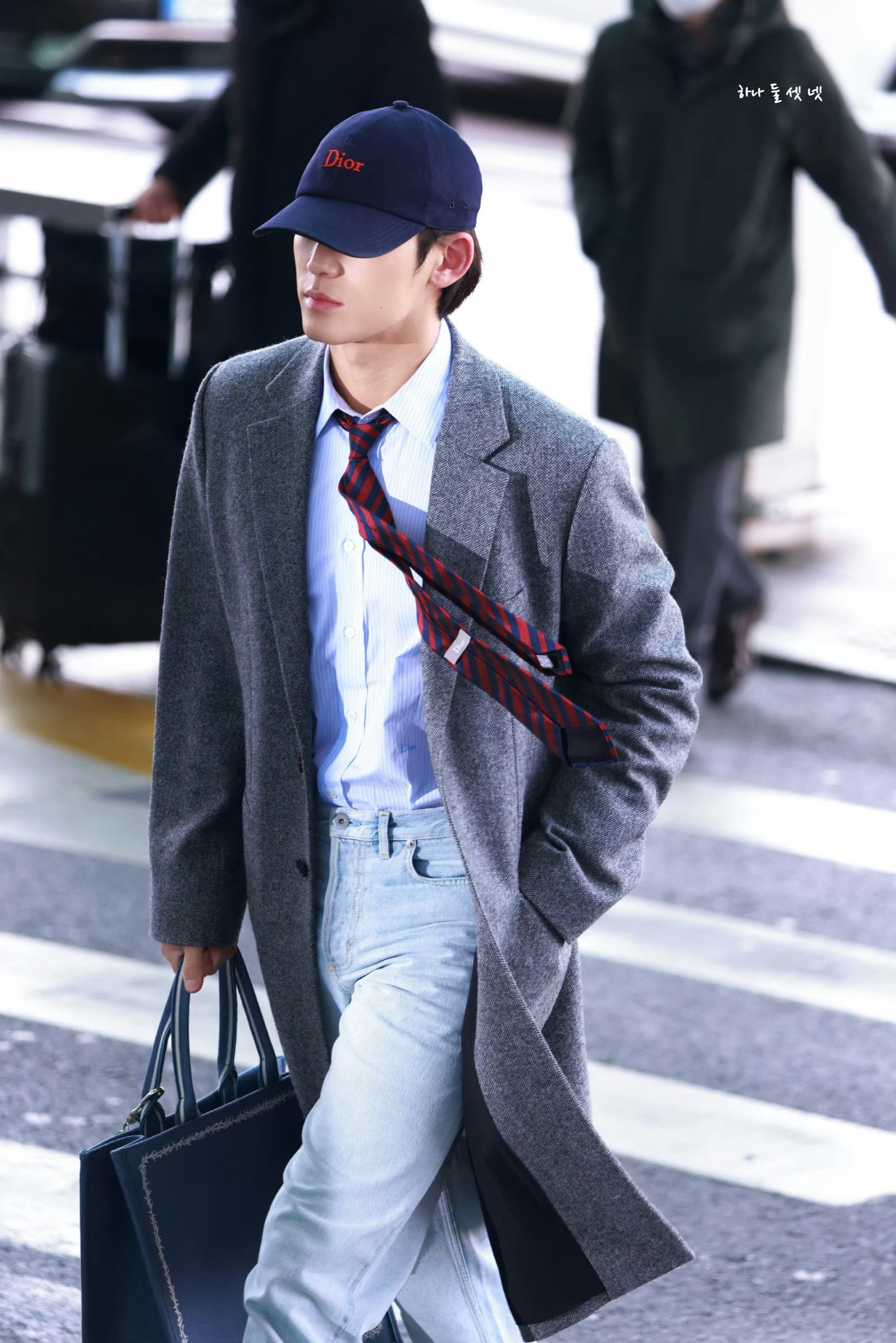 巴黎男装周|机场出发照金珉奎 —— Dior Men 2026秋冬大秀又一年相约巴黎!Dior品牌大使金珉奎即将第四度出席品牌新季大秀!机场造型上身花灰色长款西装外套搭配浅色牛仔裤,红蓝配色的领带与棒球帽呼应,举手投足间尽是潇洒自如,期待巴黎之旅!男装周时尚灵感解读