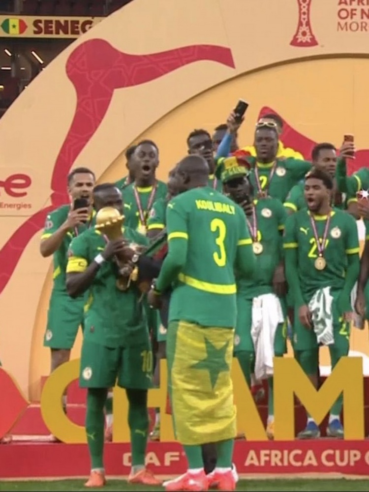 颁奖仪式中,库利巴利、伊德里萨·盖耶将队长袖标交给马内,让他第一个举起冠军奖杯。