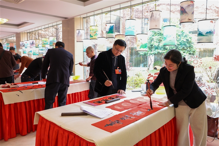 市政协书画院的书法家们在市两会政协委员驻地开展“写春联送委员”活动,喜迎市两会召开。