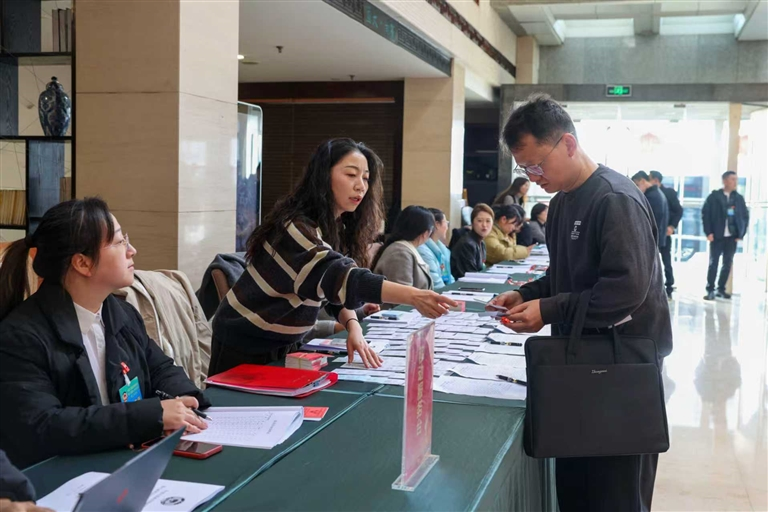 报到现场气氛热烈而有序,在工作人员的引导下,政协委员们有序完成签到登记、领取证件材料、办理入住等各项手续,为即将开始的会议做好充分准备。