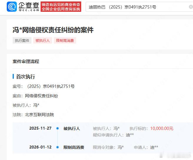 恭喜迪丽热巴告黑成功,黑粉不仅被强制执行了一万,还被限高了,网络不是法外之地,支持热巴维权!