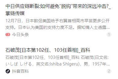 1月12日,石破茂接受路透社的采访时说:“高市早苗已经没有撤回涉台言论的必要了。”石破茂之所以这么认为,是因为他觉得中日关系已经不可能因为高市早苗撤回言论而恢复了。换句话说,他是认为高市早苗即使现在撤回言论,也无济于事。 麻烦看官老爷们右上角点击一下“关注”,既方便您进行讨论和分享,又能给您带来不一样的参与感,感谢您的支持!   这一表态与石破茂两个月前的立场大相径庭。2025 年 11 月,他还在电视节目中批评高市早苗 “外交不是过嘴瘾”,提醒其重视中日关系的微妙性,如今态度 180 度转变,引发外界广泛猜测。   高市早苗的涉台言论并非偶然,2025 年 11 月初,她在预算委员会中声称,若中国对台湾省动武可能构成日本 “存亡危机态”,暗示日本可能动用自卫队参与所谓 “台海危机”。这一言论直接突破一个中国原则底线,触碰中方核心利益。   中国官方迅速作出强烈反应,多次强调日方必须撤回错误言论,否则后果自负。除了外交层面的严正交涉,中方还采取了一系列反制措施,包括加强对日本两用物项出口管制,禁止一切可能提升日本军事实力的相关出口,稀土等关键材料也在管制范围内。   中日关系长期以来以经济互依和政治沟通为基础,高市早苗的激进言论严重冲击了这一合作基石。对日本而言,最直接的冲击首先体现在旅游业,中国游客的锐减让依赖中国客源的日本旅游业遭受重创,相关景区、餐饮、零售行业订单大幅下滑。   不止旅游业,日本制造业、半导体等关键行业也面临严峻挑战。中方的出口管制和供应链调整,导致日本部分企业出现原材料供应中断、生产成本上升的问题,不少依赖中国市场和中间产品的日企陷入经营困境。   数据显示,日本超市三成蔬菜来自中国,医院六成抗生素原料依赖中国供应,汽车产业转型所需的稀土资源九成以上来自中国,这种深度依赖让供应链调整变得十分艰难。   石破茂在采访中直言,继续纠缠于言论撤回与否已无意义,日本当下更应面对现实,想办法弥补损失。他提出,日本需被迫调整战略,降低对华依赖,构建更具韧性的经济体系。   在供应链方面,石破茂主张推动多元化布局,鼓励企业将生产线向东南亚、印度等地转移,减少对中国单一市场的依赖。2025 年以来,已有 TDK、村田制作所等日本电子企业宣布将部分生产线迁出中国,转向东南亚和印度。   汽车领域,丰田、本田、铃木等日本车企也加快了在印度的布局,计划将其打造为电动车生产与出口基地,试图摆脱对中国供应链的依赖。同时,日本国有融资机构也将融资重点转向 “经济安全” 相关项目,优先支持在美国等盟友国家的供应链建设。   旅游业复苏方面,日本政府正积极拓展多元客源市场,试图吸引东南亚、欧美等地游客填补中国游客留下的空缺,但短期内难以弥补这一巨大缺口。   石破茂的立场转变背后,也存在日本政坛的利益博弈。有消息称,在他表态前几天,日本内阁任命其为首相特使,计划访问阿联酋推进能源和稀土资源合作,这一外交任务被认为是双方妥协的结果。   此次事件并非孤立存在,而是中日关系结构性问题的集中体现。近年来,日本在 “经济安全” 战略主导下,不断收紧产业政策、加强出口管制,试图在关键技术和产业链上与中国 “脱钩”,这种战略转向本身就加剧了双边关系的紧张。   2024 年,中日双边贸易总额约为 3083 亿美元,仍是全球重要的贸易伙伴关系,但日本对中国的出口已出现连续下滑,尤其是半导体等敏感技术领域,出口管制的加强让贸易往来进一步受限。   在华日企数量也从 2012 年的 14394 家下降到 2023 年的 13034 家,这一趋势还在持续,反映出日本企业对中国市场的态度变化,以及供应链重构的现实。   对日本而言,此次事件的教训深刻。政治言辞的失控引发了外交与经济的连锁反应,不仅让旅游业、制造业等行业承受直接损失,还打乱了长期的经济布局,付出了沉重的代价。   石破茂的提议看似务实,但实施起来难度不小。供应链多元化需要大量资金投入和时间积累,而且不少流向东南亚的新供应链仍深度依赖中国的中间产品,完全 “去中国化” 并不现实。   中国始终坚持一个中国原则,这是中日关系的政治基础。任何企图分裂中国领土、干涉中国内政的行为,都必然遭到中方的坚决反对,也会给相关国家带来不可避免的损失。