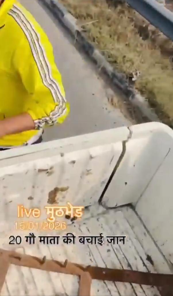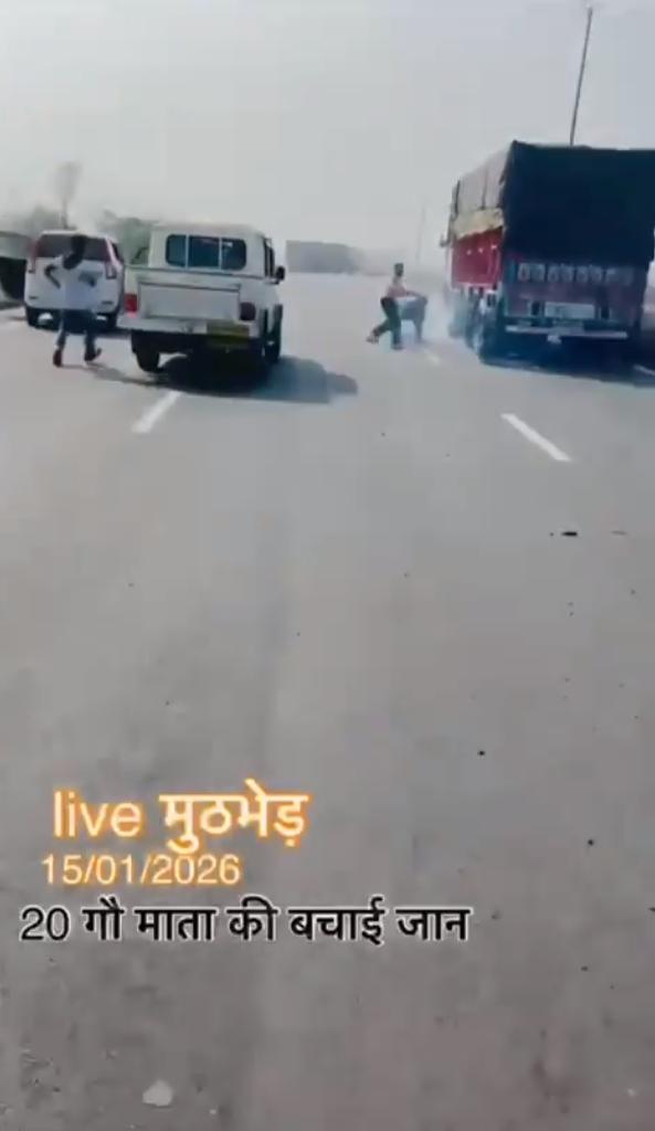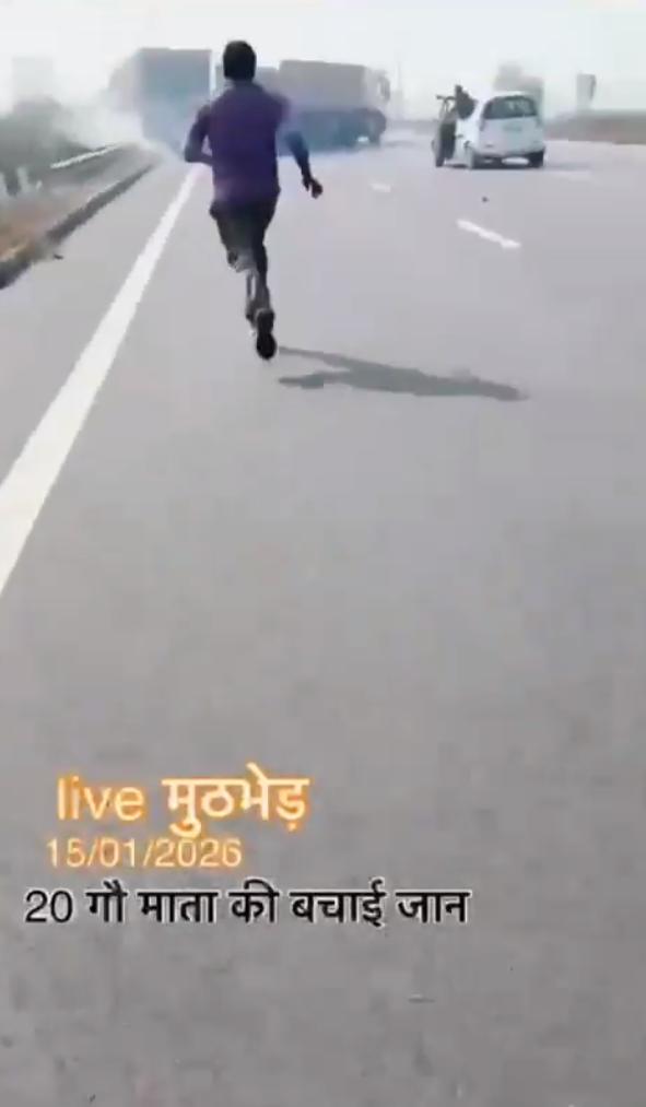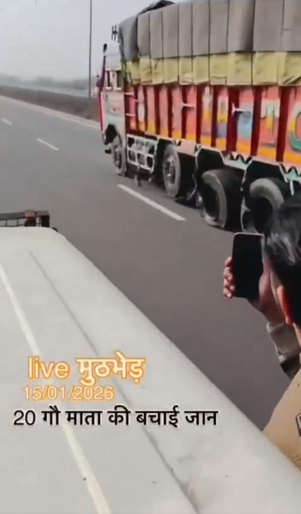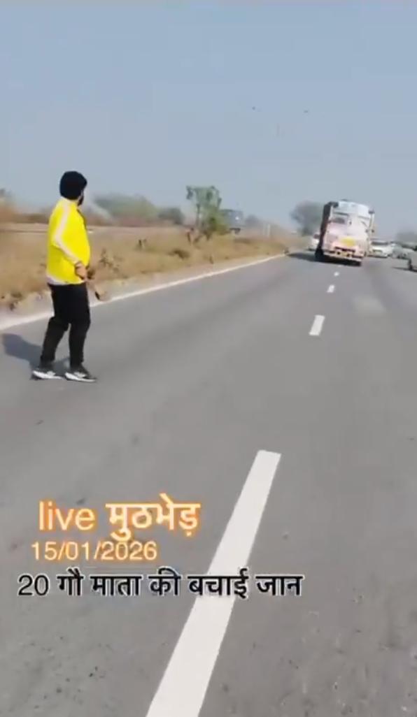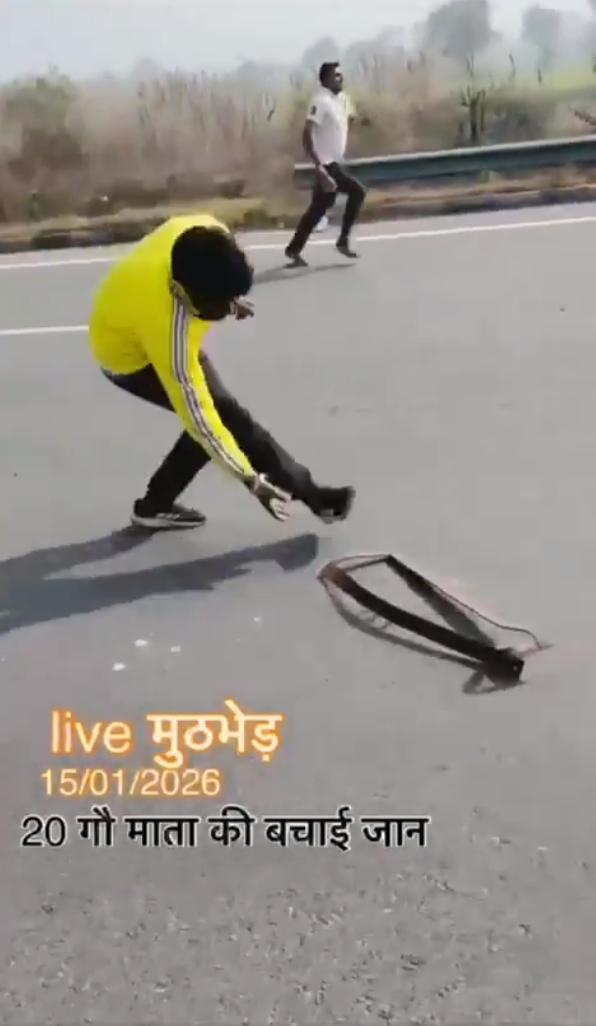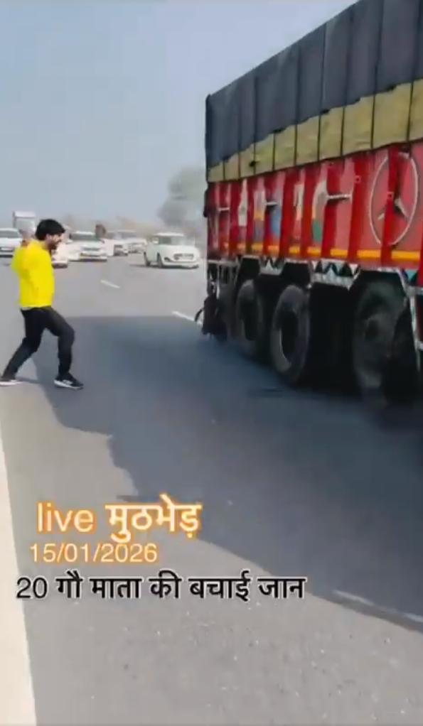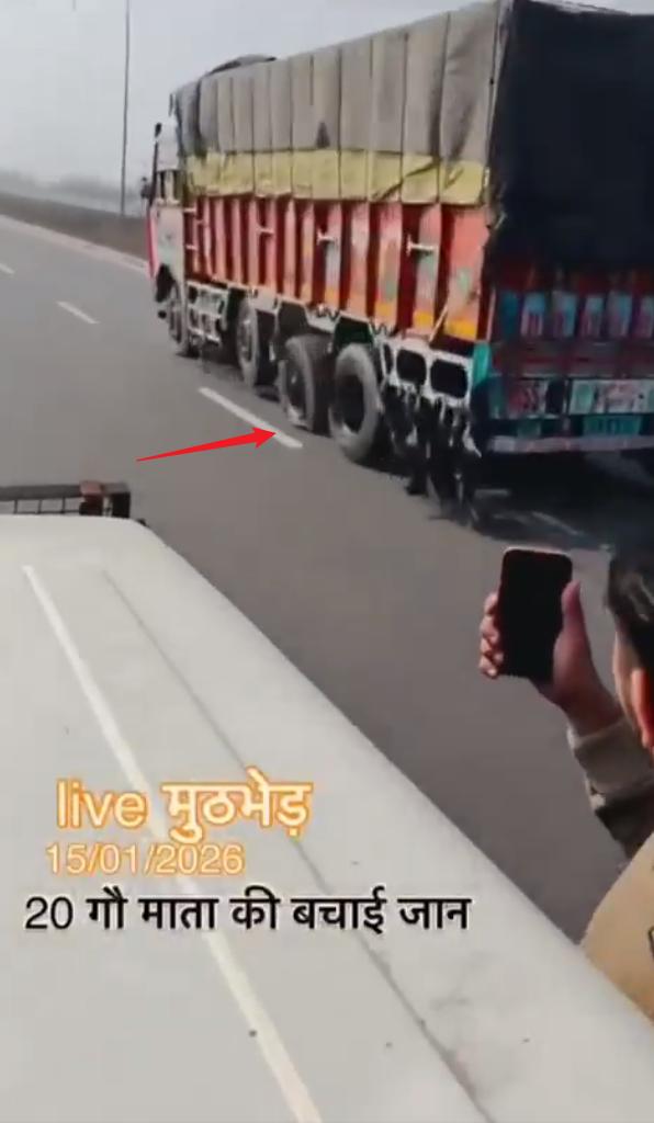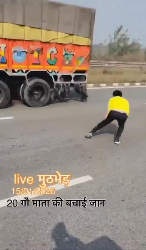 2026年1月15日印度北方邦的视频,视频显示一些印度教青年使用轮胎钉阻止一辆卡车,并“解救”了20头牛。这反映了印度教文化中对牛的崇敬,将牛视为神圣的象征。 帖子讽刺地指出,印度是世界上最大的牛肉生产国,每年出口超过1000万头牛,但数据证实,由于许多邦禁止屠宰奶牛,印度在2025年仅出口了156万吨牛肉(主要是水牛肉),位居世界第三。 最终卡车翻入路边的斜坡下。这么大事故这个不是严重违法吗?司机的损失怎么赔?无法无天。