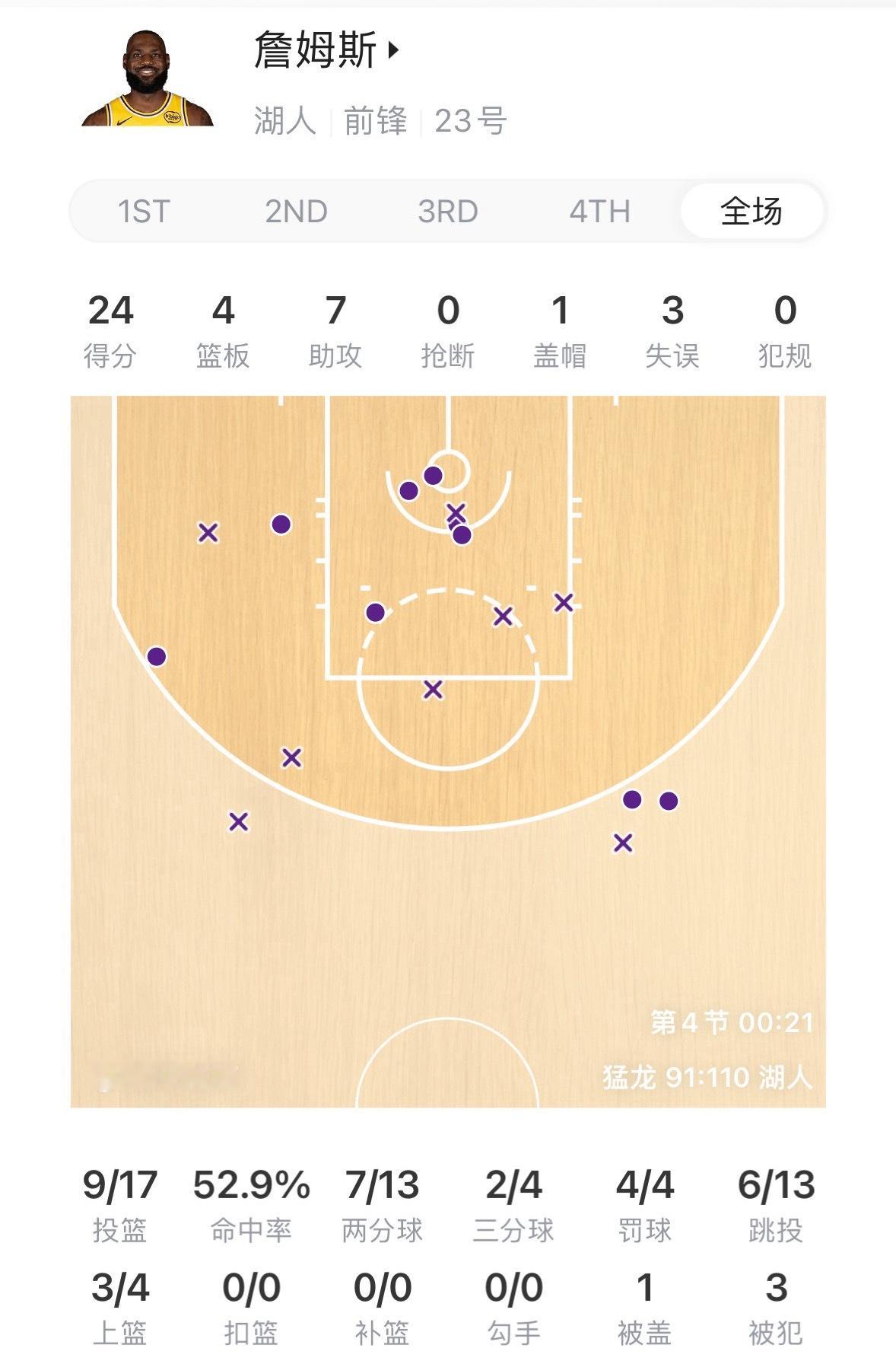 今天我们看什么? 41岁詹姆斯背靠背,32分钟17投9中,三分4中2,得到24分4板7助攻。猛龙vs湖人