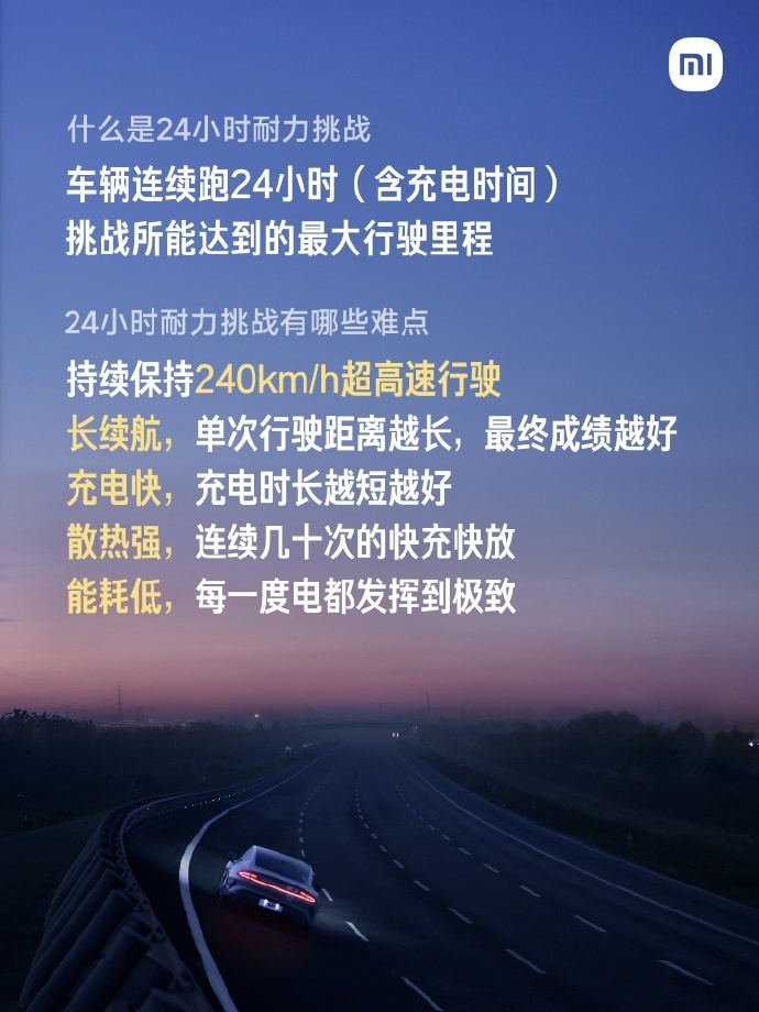 雷军回应新一代SU7Max续航 这个耐力挑战有必要好好吹一吹。可能很多不太关注的人会觉得,认为这只是跑个一天一夜而已,过年春运很多车都会堵在高速上开一整天,没啥了不起的。实际上这个耐力挑战不光考验时间持久性,还要考验汽车的综合性能,因为春运只看时间,这个挑战还要看距离。24小时跑4264km,意味着北京至深圳跑一个往返,期间还包含充电时间在内,平均下来都高达178km/h,小米官方的数据是持续保持240km/h超高速行驶。所以这种挑战,是对整车综合稳定性的考验,续航性能、散热性能、充电速度都要达到极致水平,才能发挥出最佳性能,取得最好的成绩。另外还要提一句11月20日-21日,江苏盐城的最低气温只有1℃,只能说,太牛了。小米小米汽车小米公布新一代SU7Max耐力挑战