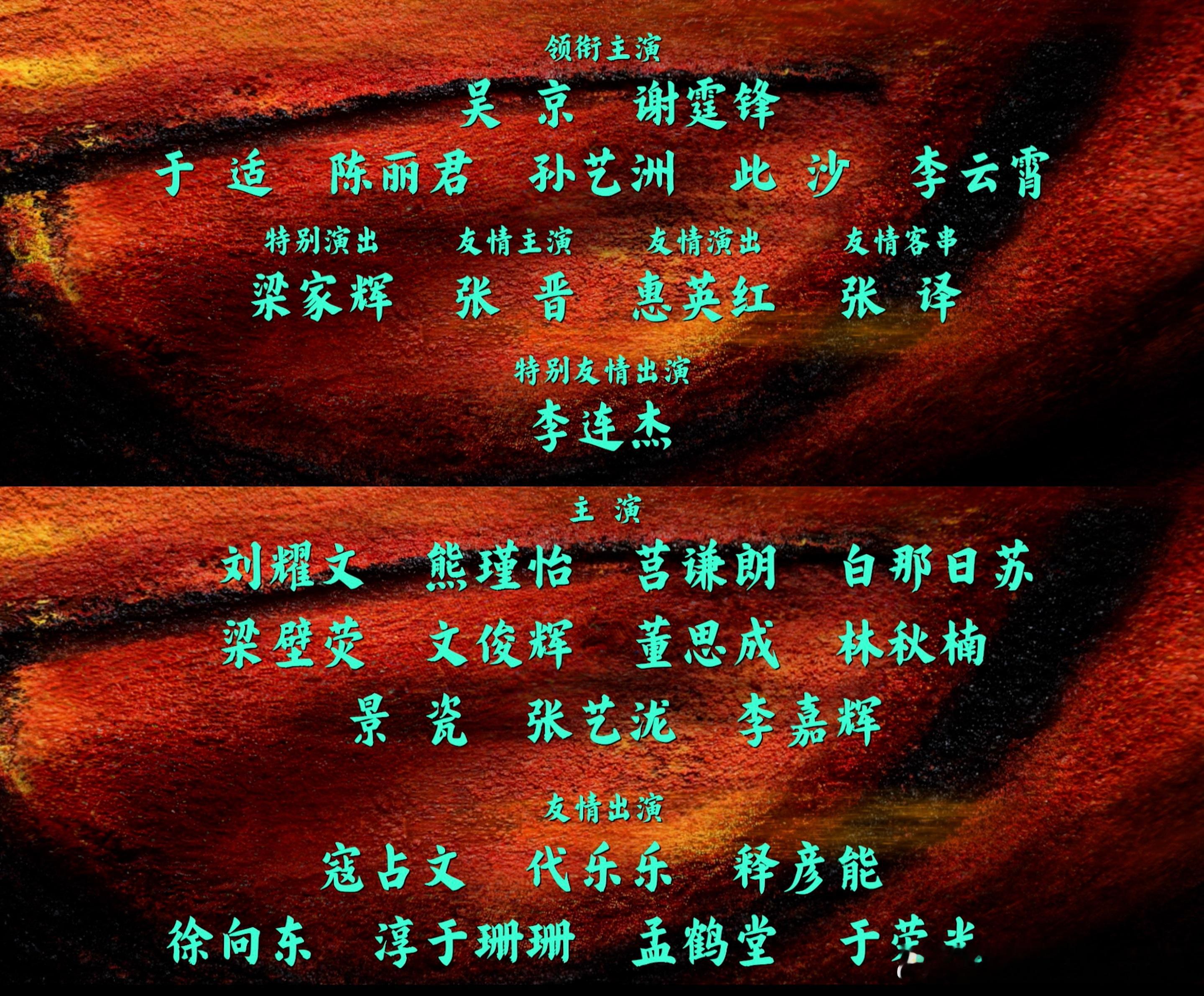 好多多多多多多人呐~~~领衔主演:吴京 谢霆锋 于适 陈丽君 孙艺洲 此沙 李云霄特别演出:梁家辉友情主演:张晋友情演出:惠英红友情客串:张译主演:刘耀文 熊瑾怡 芎谦朗 自那日苏梁壁荧 文俊辉 董思成 林秋楠景瓷 张艺泷 李嘉辉友情出演:寇占文 代乐乐 释彦能徐向东 淳于珊珊 孟鹤堂 于荣光镖人电影镖人定档春节跨年电影愿