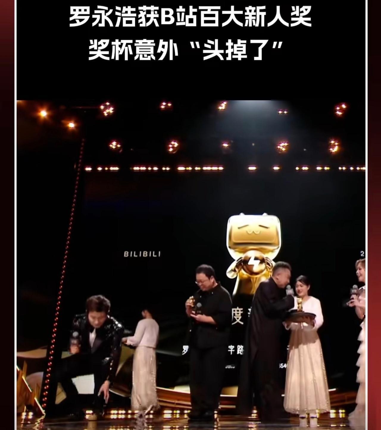 罗永浩奖杯断成两半大概是某种寓意,“小心你的脑袋!”这是个警告,作为新人,播客生涯不会就此终结吧? 罗永浩回应B站奖杯断成两半