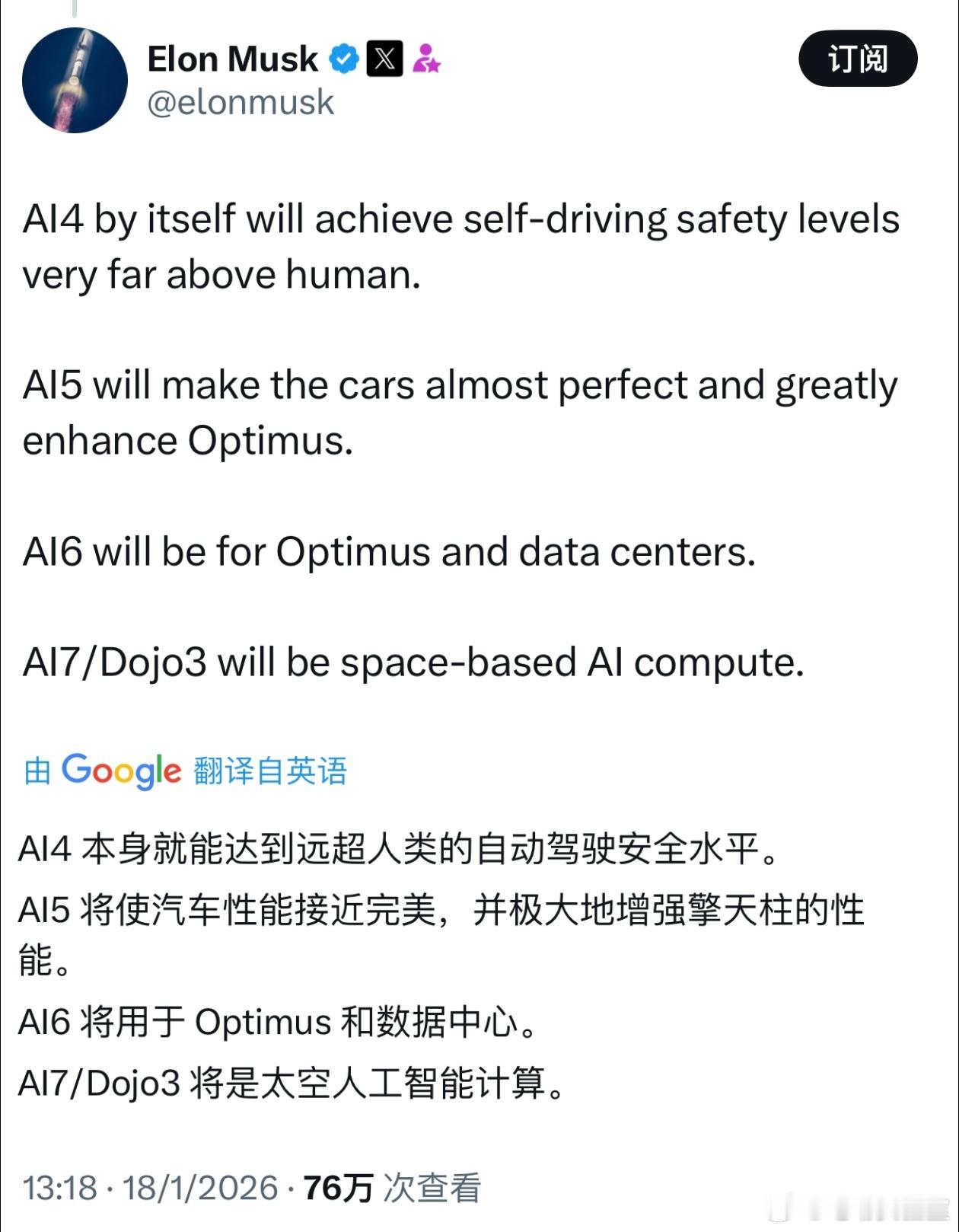 马斯克发文表示,从后续登场的AI 5芯片开始,特斯拉的关于AI的研究中心也会慢慢地转向机器人、数据中心甚至是太空领域,因为对于自动驾驶而言,AI 4已经能够实现“超越人类驾驶员”的表现,AI 5则是能让自动驾驶能力变得“完美”。同时他还透露目前AI 5芯片的设计研发正在稳步推进。如果真如他所言,那是不是就意味着自动驾驶的算力竞赛已经来到一个终点了呢?特斯拉特斯拉fsd大v聊车