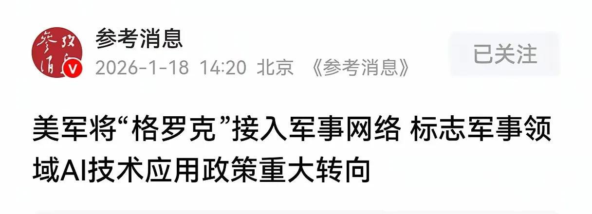 美军直接把马斯克的格罗克AI接入军事网络,这AI还和特斯拉深度绑定。 特斯拉