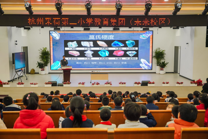 1月16日,由中共杭州市委宣传部(杭州市文明办)主办、每日商报承办的杭州市“第二课堂优秀课程进校园”活动正式启动,首站活动由浙江省地质博物馆领衔,带着“地球宝藏——矿物晶体”课程走进杭州市采荷第二小学,为孩子们带去了一场穿越时空的远古探秘之旅。