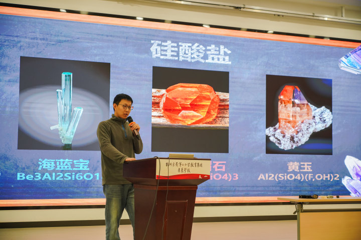 课堂上,施老师以“石头里的秘密”作为引子,循序渐进地答疑解惑:从“矿物与岩石是什么”,到“矿物如何形成”“矿物的特性”,再到“矿物与生活”“矿物收藏”“真假矿物”,整堂课融合多学科知识,学生们在聆听与观察中轻松探索,不仅了解了矿物与岩石的常识,更激发了对自然的好奇心。