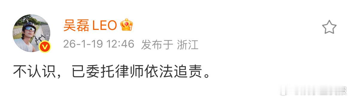 吴磊方依法追责造谣者本人发博了,直接了当“不认识,已委托律师依法追责”。造谣还是太简单了,每个人都得为自己的行为负责!支持合理维权!吴磊 不认识