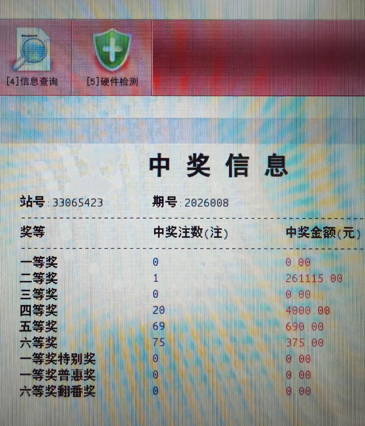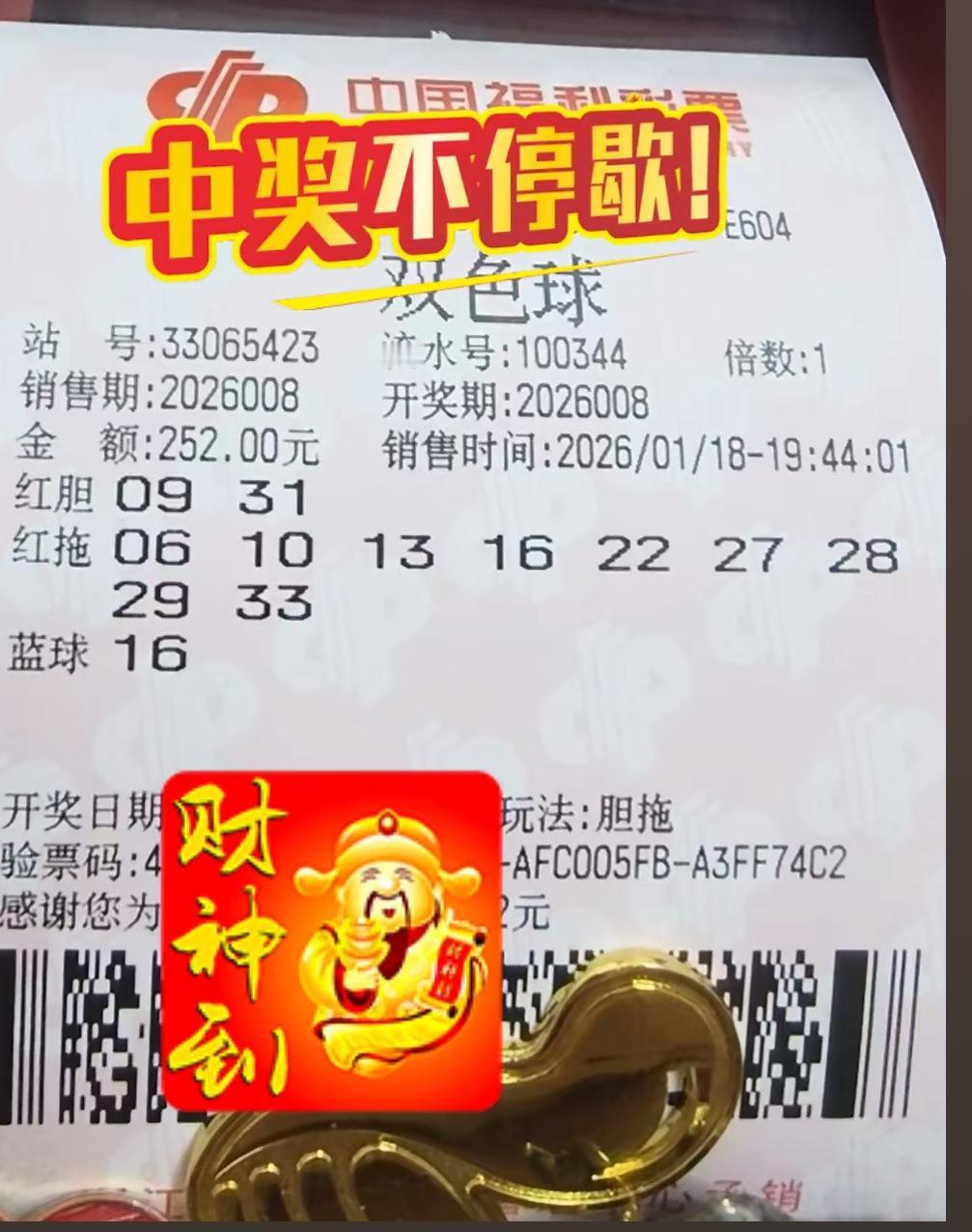 昨夜双色球第26008期开奖,一张命中二等奖的胆拖实票悄然走红。此票以“2胆9拖”精心布局,胆码之精准尤其令人惊叹——从33个号码中仅择其二,竟双双击中,实属难得。观其选号思路,沉稳老练,多半出自一位老彩民之手。虽因蓝球10一号之差,与头奖失之交臂,但所幸当期二等奖奖金仍达二十六万余元,亦可谓收获颇丰。 每逢目睹他人捧得幸运大奖,心中总不免泛起一丝波澜。回想自己这些年来的坚持,虽曾小有收获,却始终未能登顶那一等奖的巍峨山巅。但愿在不久的某一天,我也能在万众瞩目的热榜之上,见到属于自己的那道光芒。