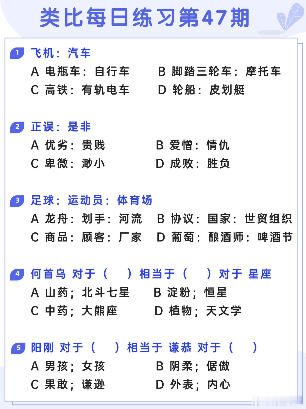 图推类比每日练习第47期图推难度:☆☆类比难度:☆☆开学元气加油站决战公考省考26省考