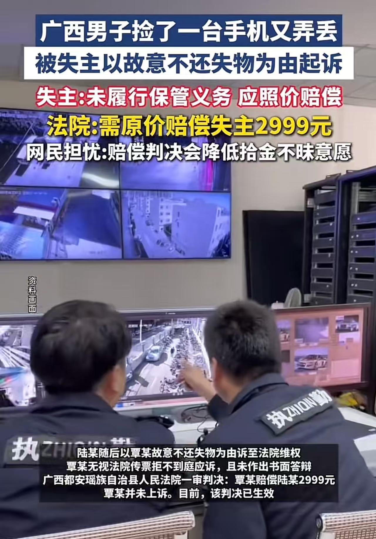 “捡了个手机,结果赔了三千块!”广西,男子捡了一台手机又弄丢,被失主以故意不还失物为由起诉!失主:“未履行保管义务,应照价赔偿!”男子:“我捡到又丢掉了,凭啥让我赔钱?”法院:需原价赔偿失主2999元!网友:看的我都不敢捡东西了! 陆先生在街头不慎遗失一部刚买不久的智能手机,发现手机不见后,他立刻报警。 警方调取监控,很快锁定捡走手机的人——覃某。 陆先生辗转找到覃某住处,态度诚恳地请求归还。 没想到覃某一脸无奈地说:“我那天喝多了,捡到手机后随手放口袋,结果回家路上又弄丢了,真不是故意不还!” 陆先生一听就急了:“你捡到的是我的财物,就算喝醉了,也该妥善保管或交给警察,怎么能说丢就丢?现在手机找不回来,我的损失谁来承担?” 覃某却摆摆手:“那是你自己不小心丢的,凭啥让我赔?” 协商无果,陆先生一纸诉状将覃某告上法庭,要求其因未尽保管义务,照价赔偿2999元。 覃某无视法院传票拒不到庭应诉,且未作出书面答辩。 法院经审理认为:根据《民法典》第316条规定,拾得遗失物,应当返还权利人;拾得人在返还前负有妥善保管义务。 覃某捡到手机后,既未主动联系失主,也未交至公安机关,反而因自身疏忽(如醉酒)导致手机再次丢失,已构成对保管义务的违反,应承担赔偿责任。 最终,法院一审判决:覃某赔偿陆先生2999元。 消息一出,网络炸锅: “以后看到手机掉地上,我绕着走!好心捡了要负责,丢了还得赔钱,谁敢碰?” “支持法院判决!捡东西不是白捡,法律早就说了‘拾金不昧’是义务,不是选择题。” “但这也太吓人了!普通人哪懂什么‘保管义务’?万一捡了又被人抢了、被偷了,是不是也要赔?这会不会寒了好人的心?” “关键是他连法院都不去!如果真无辜,为啥不敢出庭说明情况?明显是心虚+逃避。” 也有法律人士指出: “法律不是不让捡,而是要求‘负责任地捡’。你捡到后,最稳妥的做法是原地等待失主、交物业、送派出所——而不是揣兜里走人。一旦你决定带走,就等于接过了保管责任。” 这起案件判的不是“捡手机”,而是对他人财产权的漠视。 覃某的问题,从来不是“喝醉弄丢”,而是从捡起手机那一刻起,就没把别人的损失当回事——既不报警,也不尝试归还,最后还理直气壮说“关我什么事”。 法律之所以规定“拾得人需妥善保管”,正是为了防止“顺手牵羊”和“假装好心”。 真正的善意,不是‘我捡了’,而是‘我负责到底’。 当然,公众的担忧也值得重视:如何在保护失主权益与鼓励拾金不昧行为之间找到平衡? 或许未来需要更清晰的指引——比如设立“拾物免责通道”(如24小时内交至指定点可免责),而非一刀切让拾得人承担无限风险。 但无论如何,不能因为怕担责,就纵容“拿了就跑”的侥幸心理。 否则,今天你丢的是手机,明天社会丢的,就是最基本的诚信与温度。 捡得起,更要担得起——这才是文明社会该有的样子。