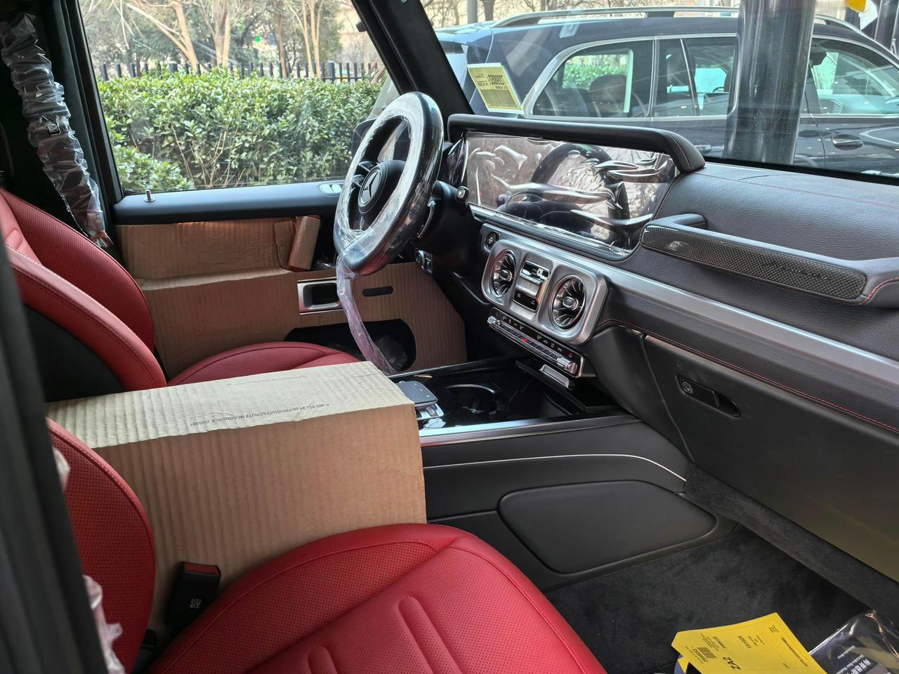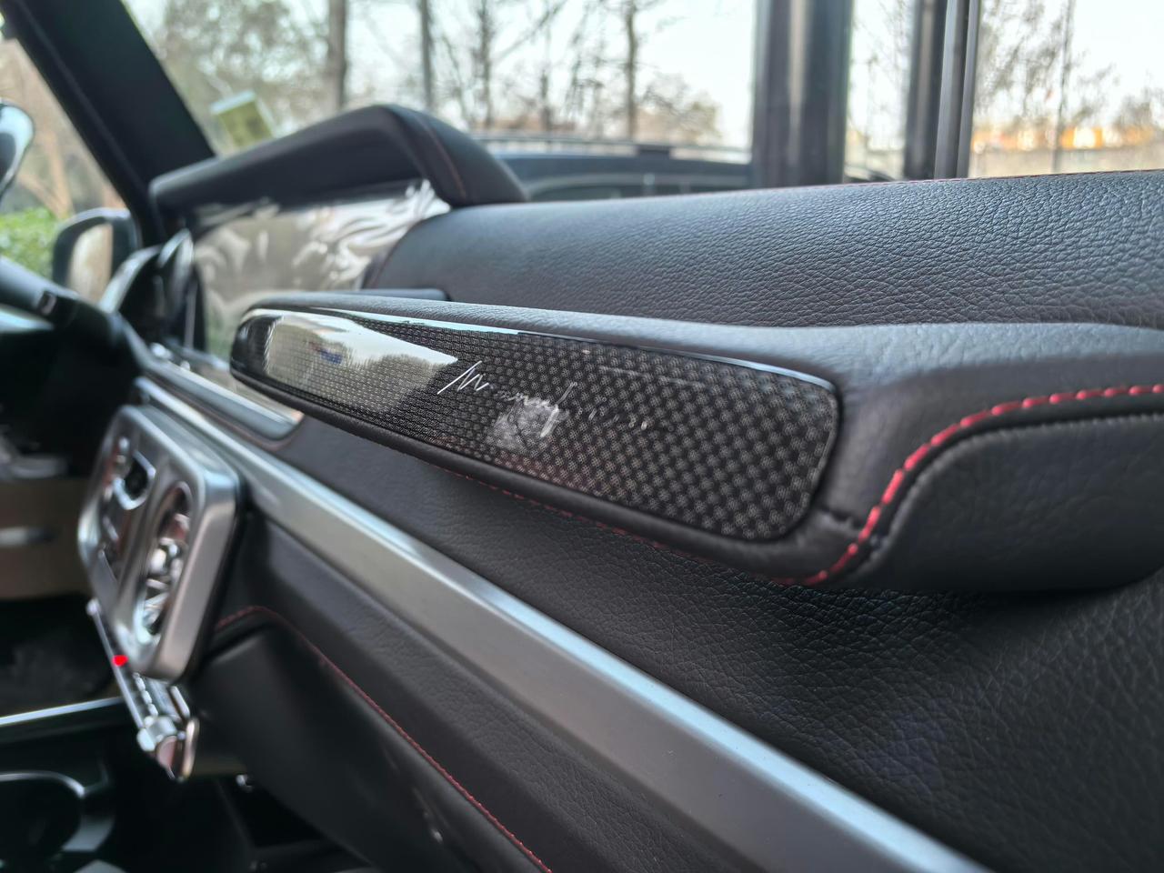 奔驰G500黑红配色配AMG运动套件,这黑红搭配经典得没话说,走在路上回头率直接拉满。内饰配置超丰富,触摸屏、新款平底方向盘都有,还有无钥匙进入、前排无线充电和冷热杯架。高级组件里天窗、3D柏林之声音响一应俱全,主动多轮廓座椅还能通风、按摩。 动力也不含糊,3.0T直列六缸发动机,百公里加速5.4秒,电机助力后总功率达345KW,扭矩760N.m。外观上熏黑20寸AMG轮毂超酷,而且它还是即将绝版的车型。要是再升级个G63套件,像22寸轮毂、AMG卡钳刹车等,颜值直接起飞。开着它,通勤出游都超有面儿!