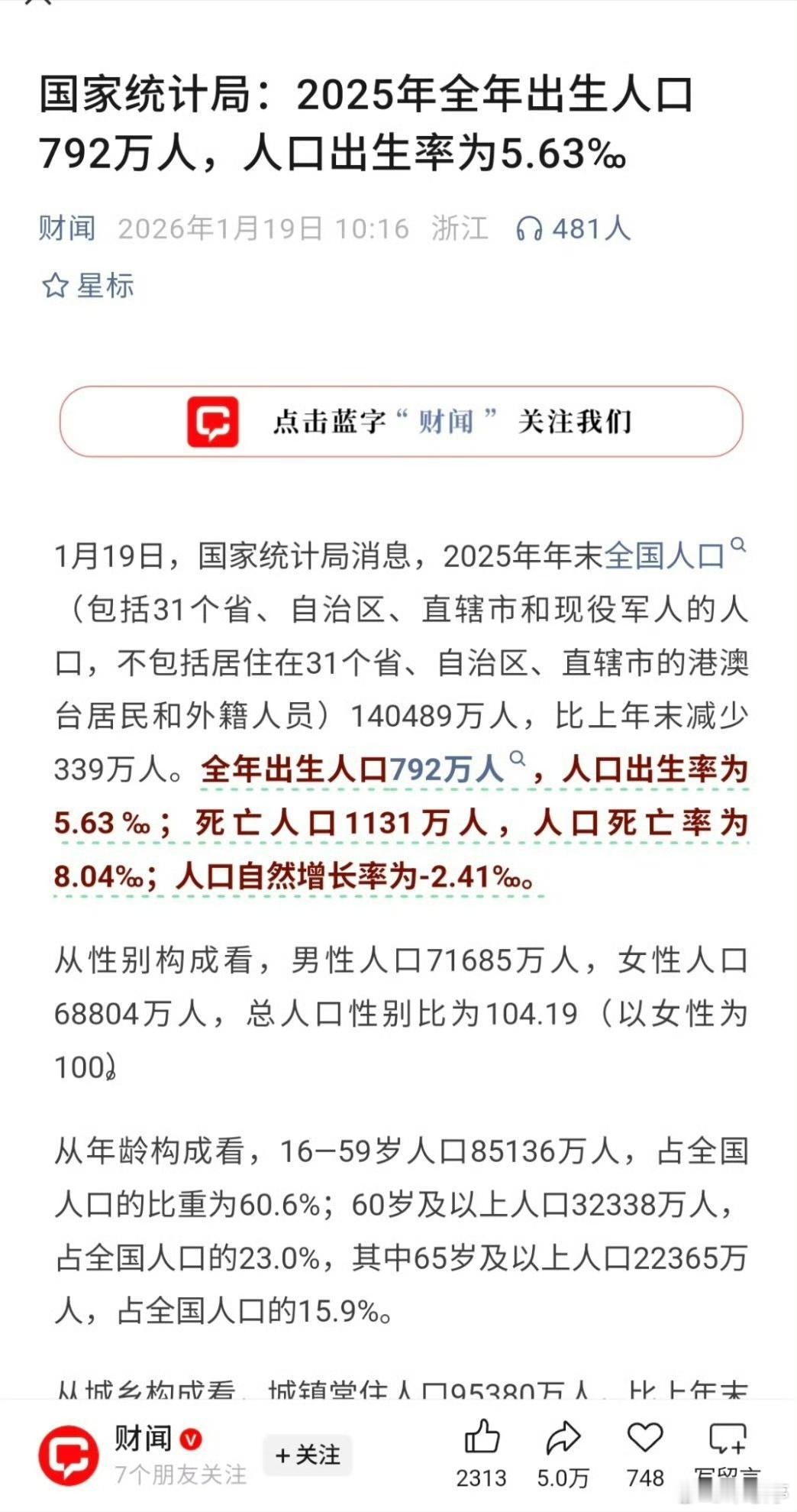 2025年GDP增长5%GPD增长5%,全年出生人口792万人,新生儿再创新低,死忙1131万,人口自然增长率-2.41‰!整体而言2025经济表现不错,不过人口增长率方面也确实有压力~