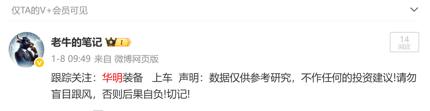 涨声鼓励!1月8日跟踪关注的:华明装备 今天也迎来了涨--停! 金价