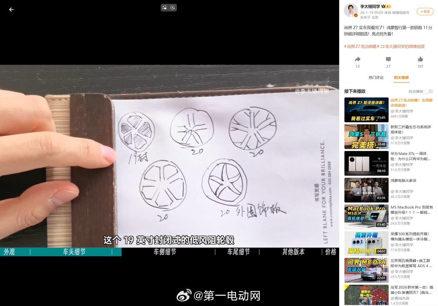 有两位博主先后分享了鸿蒙智行 新车的信息:据博主透露,一线销售助手中已经出现了问界M6的选项,预热活动即将会开始 问界M6 博主发布了最新尚界Z7 的最新细节:外观非常运动,车高约1.4-1.5米,车长约5米以上,轴距约3米;前脸两侧配有真气道,进气孔直接通到轮胎上,车侧位置也有真实进气孔。前脸配备一颗360摄像头,车标延续可发光设计新车在辅助驾驶硬件上与R7、M7、M8相似,车头底部进气格栅内置一颗4D毫米波雷达,推测前面还有3颗,共5颗;搭载智界V9同款新激光雷达(更高线束)尚界Z7还配备车外麦克风(两侧都有),预计支持车外语音控制、辅助驾驶时判别救护车等车辆信息;车辆的NFC触点位于后视镜上方,门把手为支持两种方式开启的门把手(微动开关/机械拉开),车尾配备慢充+快充充电口,并采用贯穿式车尾灯车机(内置碎钻效果的星河装饰灯)