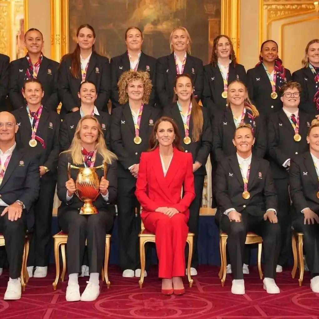全新麦昆套装,新年新貌的凯特[惊喜] 温莎城堡里召开了为英格兰橄榄球队的庆功会,