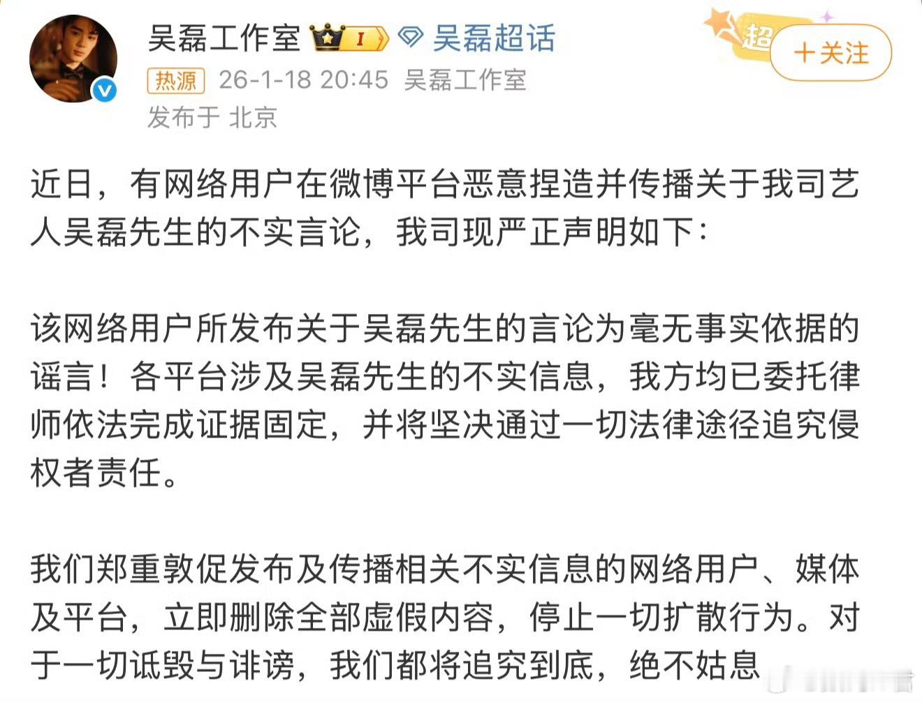 吴磊工作室这一波操作真的很迷惑被造谣的是肖战,肖战粉丝也只是发了一条澄清,但是吴