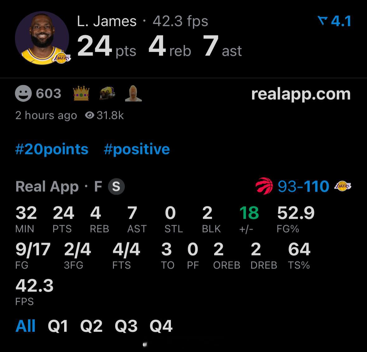 湖人今天打得比猛龙好,该赢猛龙vs湖人