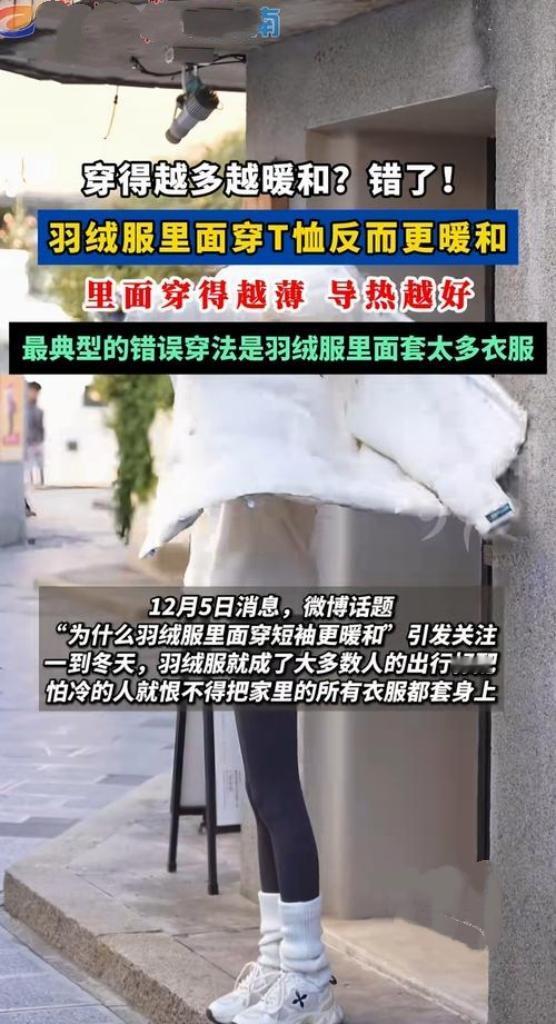 羽绒服里少穿反而更暖和?有人觉得穿少点,羽绒服能更好锁住热空气;也有人坚信多穿才