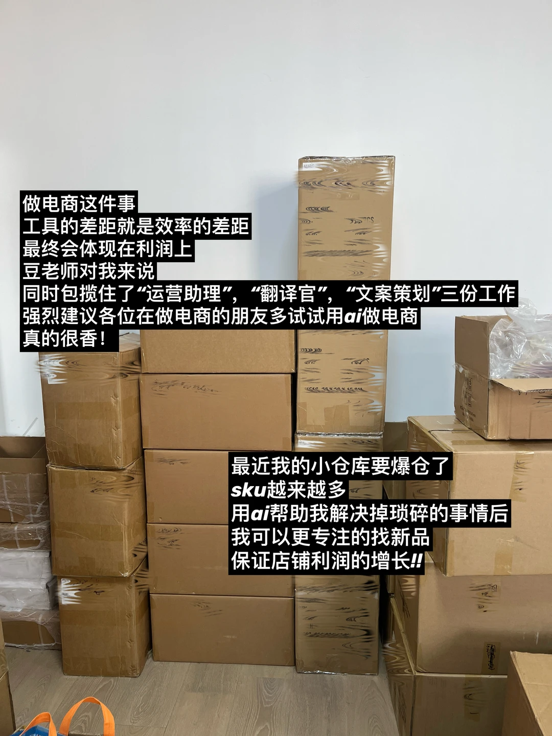 做电商这件事,工具的差距就是效率的差距,最终会体现在利润上,豆老师对我来说,同时包揽住了“运营助理”,“翻译官”,“文案策划”三份工作,强烈建议各位在做电商的朋友多试试用ai做电商,真的很香!