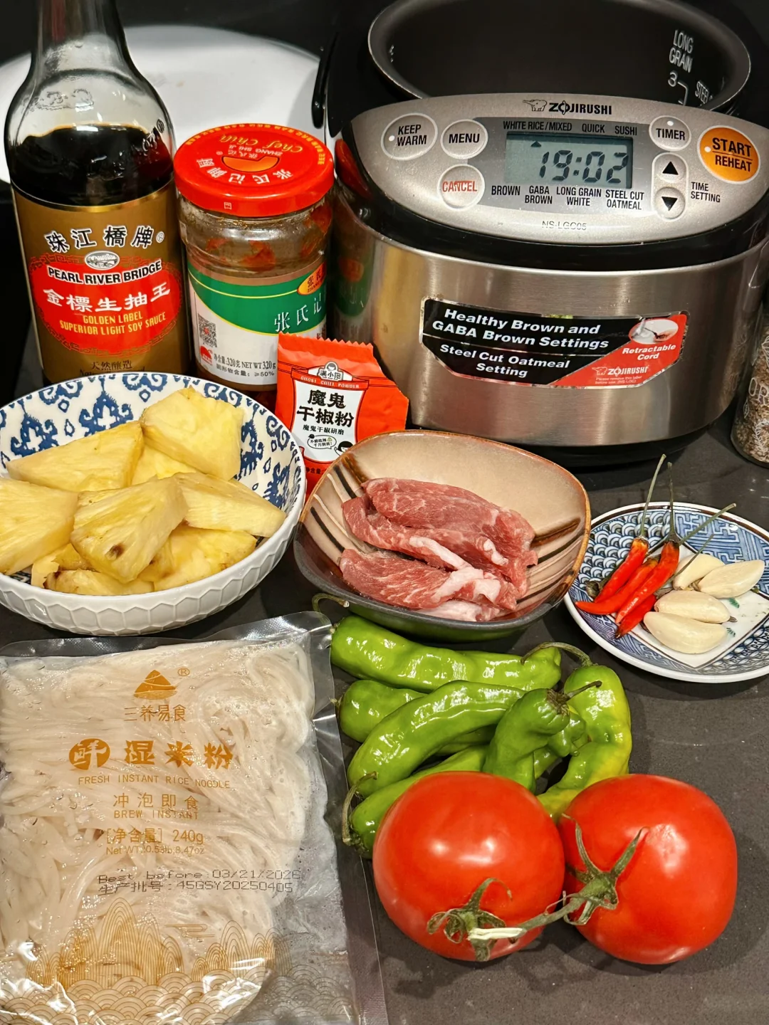 刚好切开了一枚大菠萝,果断把这馋了很久的菠萝火烧肉米线给安排上!