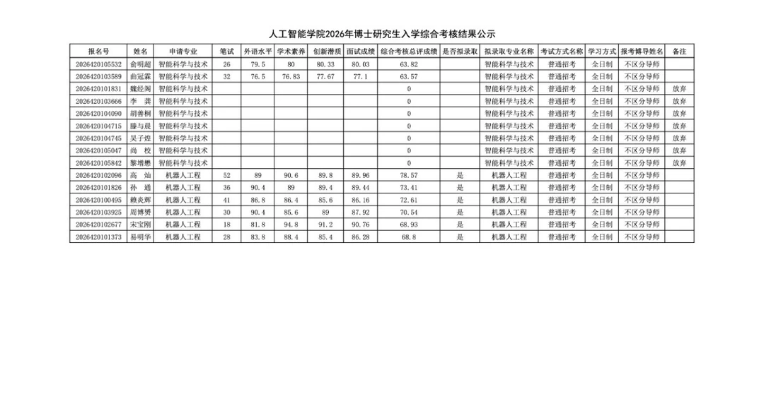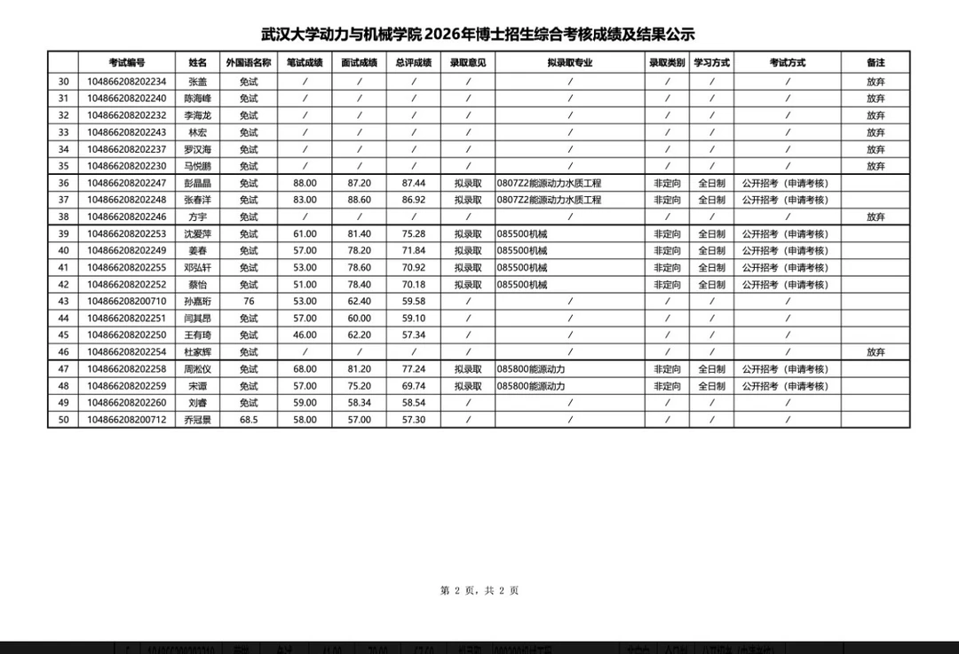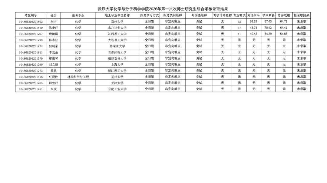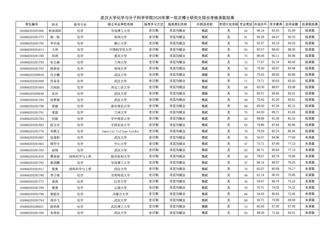 武汉大学2026年博士拟录取名单公示!