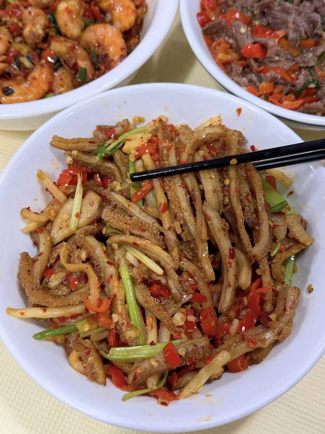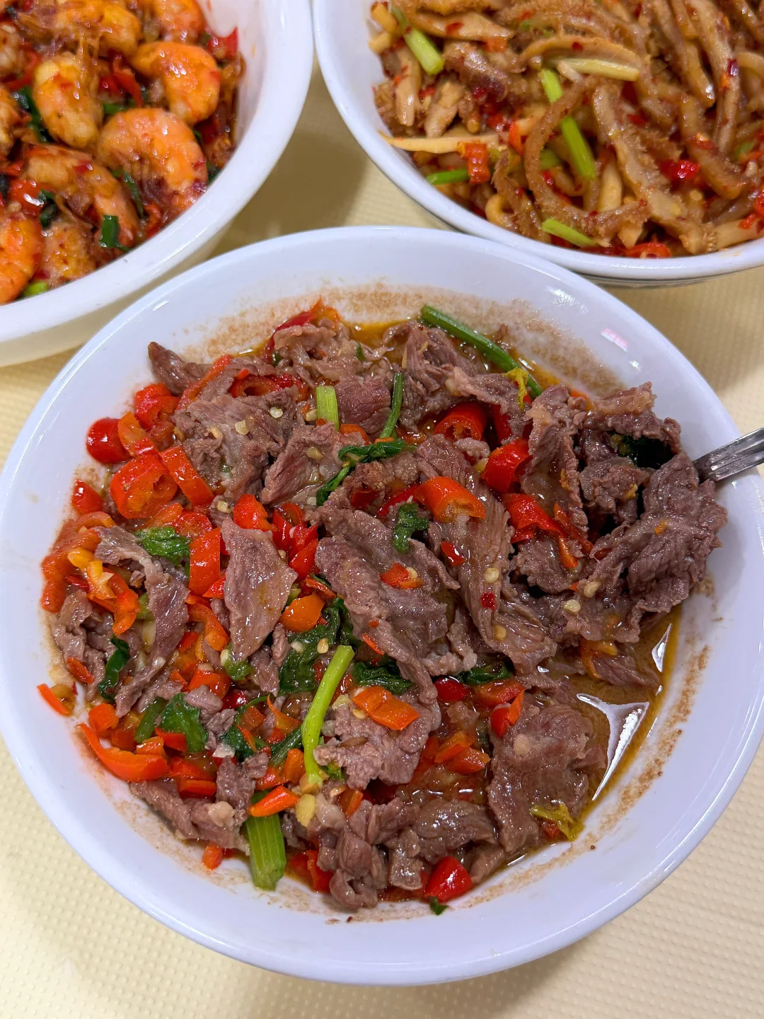 1️⃣豆豉辣椒整排骨 不愧是招牌、排骨入味大块真的超级下饭!是每次来的必点菜!! 2️⃣香煎金钱蛋 隐藏吃法:拌饭kuku炫的一道菜!香的不行! 3️⃣酸萝卜牛肚丝 下饭菜+1,份量多且口感脆,酸酸辣辣太下饭了! 4️⃣小炒基围虾 先炸后炒,香香辣辣的,小米辣和蒜苗搭配绝了! 5️⃣高压锅鸡爪 上桌就被香晕了,高压锅压的软糯一抿脱骨。 6️⃣小炒黄牛肉 炒的很入味!整桌人都夸:怎么会这么好吃!想想都要流口水了🤤来长沙旅游的小伙伴千万别错过啦!!!