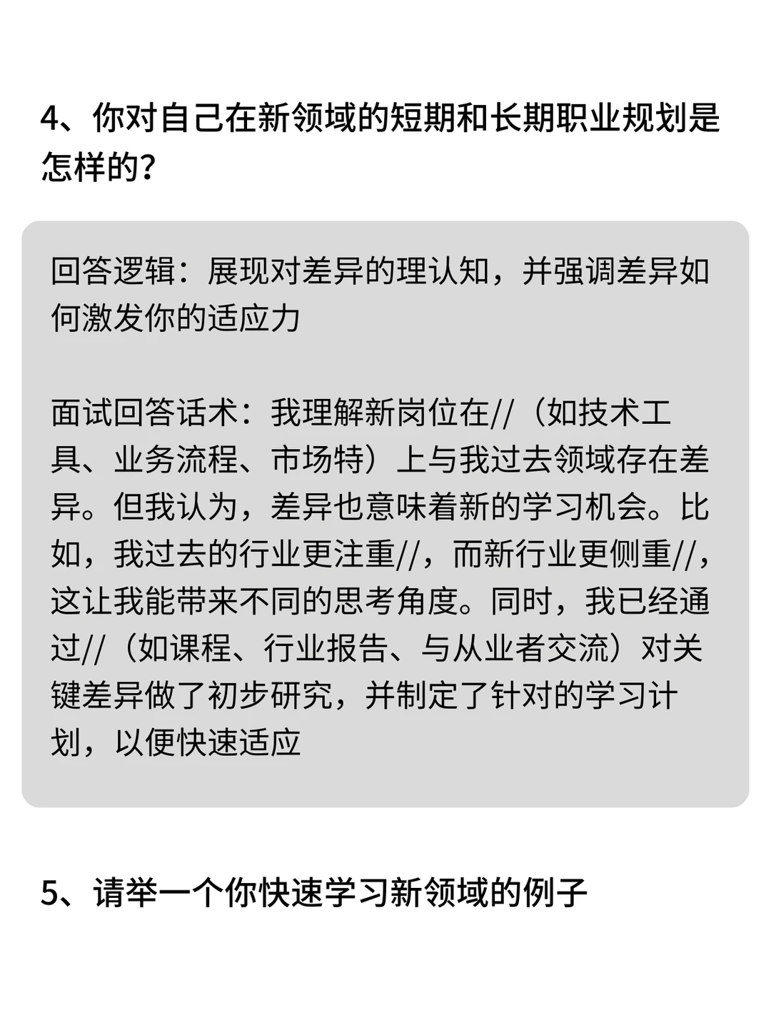 4、你对自己在新领域的短期和长期职业规划是怎样的?