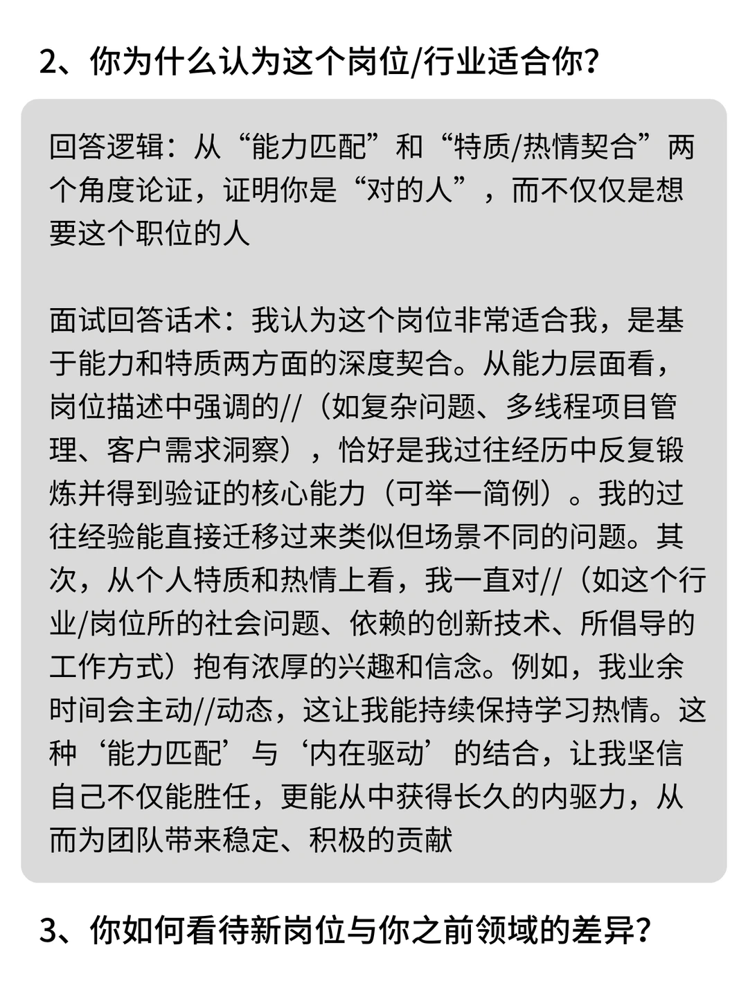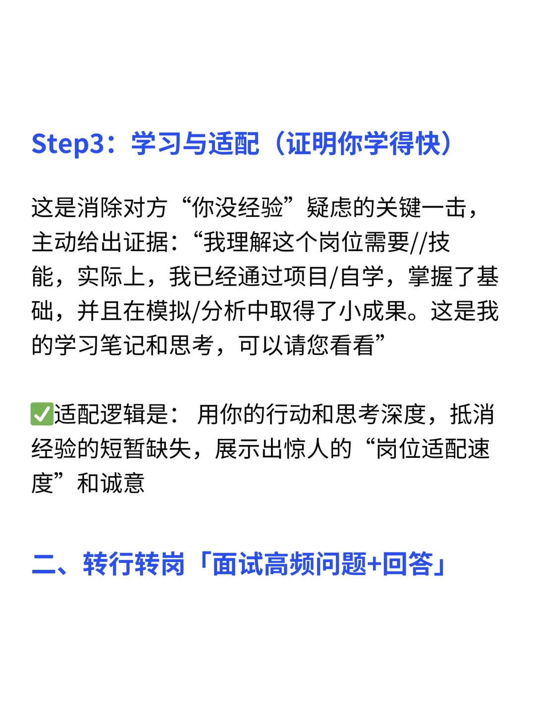 🔹适配逻辑是: 用你的行动和思考深度,抵消经验的短暂缺失,展示出惊人的“岗位适配速度”和诚意