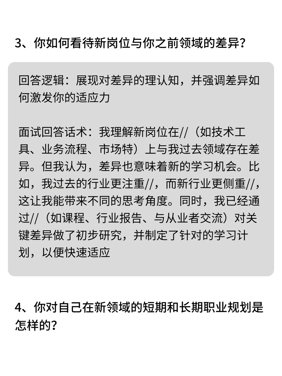 3、你如何看待新岗位/行业与你之前领域的差异?