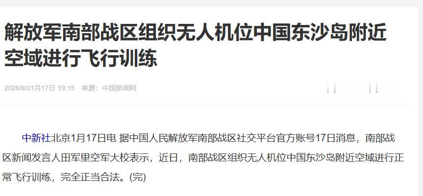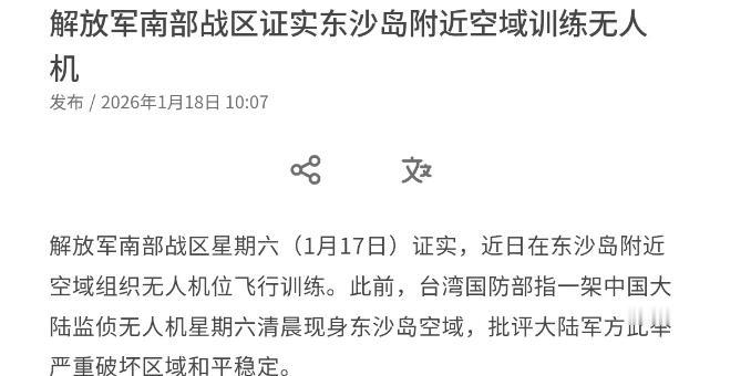美国军经过台湾海峡,没想到解放军突然证实了一个大消息,这引起外媒格外的关注!1月18日,媒体发文称,解放军南部战区已经证实,近日在东沙岛附近空域组织无人机位飞行训练。 此前,岛内指一架中国大陆监侦无人机星期六清晨现身东沙岛空域,批评大陆军方此举“严重破坏”区域和平稳定。 而我们解放军南部战区则回应称,近日,南部战区组织无人机在东沙岛附近空域进行正常飞行训练,完全正当合法。 1月16日到17日,美军“菲恩”号导弹驱逐舰带着“西尔斯”号海洋测量船,大摇大摆过了台湾海峡,按他们的说法是“维护航行自由”,可明眼人都看得出来,就是来刷存在感,给岛内“台独”势力递错误信号。 尤其是那艘“西尔斯”号,看似是搞海洋科研,实则就是个偷偷摸摸的“海底侦察兵”,专门扫描海底地形、记下水文数据,为以后的军事动作铺路,这套把戏我们早就见怪不怪了。 面对这波挑衅,解放军东部战区没废话,直接组织海空兵力全程跟监警戒,从海面到空中织了张密网,美舰的一举一动都在掌控之中。这边美舰的引擎声还没完全消散,那边南部战区就证实了东沙岛附近的无人机训练,时间点卡得恰到好处,与其说是巧合,不如说是精准回应。 岛内倒是先跳了出来,台防务部门说1月18日清晨发现解放军监侦无人机出现在东沙岛空域,还特意强调没进入他们所谓的“领空”,甚至说因为是同类型监侦无人机,就没派兵应对。 可转头民进党官员就放狠话,说要是无人机敢进来就“该开火就开火”,这种嘴上强硬、行动怯懦的样子,实在有点滑稽。 其实解放军这场无人机训练,根本不是针对岛内那点兵力。这款高空监侦无人机飞得高、看得远,台军的防空武器根本够不着,5点44分进入空域,5点48分就脱离,短短4分钟,把态势感知做到了位。 真正的目标,是在南海、西太平洋一带活动的美军舰机。毕竟美军近期在亚太动作频频,“林肯”号航母赖在南海不走,鱼鹰运输机频繁起降维持补给,驻日美军的F-35A战机还在琉球群岛搞低空突防训练,甚至闹出了信号消失的小插曲,种种动作都在试探我们的底线。 解放军这波操作,就是明明白白告诉美方:你在台海搞侦察、在南海摆航母,我就用无人机把你的活动范围盯紧,你的每一步试探,我都有对应的掌控力。南部战区说训练完全正当合法,这话可不是空话。 东沙岛是中国固有领土,在自家地盘附近组织训练,天经地义,轮不到别人指手画脚。反观岛内,一边靠着大陆的经贸红利过日子,一边跟着美方炒作“威胁论”,动辄就说“破坏区域稳定”,殊不知真正破坏稳定的,是那些外部势力的干涉和“台独”分子的妄想。 美军这次过台海,本身就透着一股底气不足的焦虑。之前他们在中东对着伊朗喊打喊杀,最后因为盟友不配合、怕遭报复,硬是把军事打击按下了暂停键,转头就把重心挪到印太地区,想用挑衅中国来找回点面子。 可他们忘了,这里不是中东,解放军的实力可不是伊朗能比的。福建舰海试在即,055型万吨大驱批量入列,远程精确打击能力覆盖范围越来越广,美军那两艘舰艇在我们的海空力量面前,根本没多少胜算,所谓的“威慑”不过是自欺欺人。 美方一边派军舰挑衅,一边又想和中国谈合作。中国驻美大使谢锋刚说完“合作比零和好”,美军转头就来台海挑事,翻脸比翻书还快。这种“一边想从中国市场捞好处,一边又想遏制中国发展”的精神分裂,恰恰暴露了他们的霸权焦虑。 眼看着中国在科技、军事、经济全赛道稳步前进,美方再也没法靠单打独斗压制我们,只能靠这种小动作刷存在感,可越是这样,越显得底气不足。 岛内“台独”势力想靠外部势力撑腰,更是打错了算盘。从之前的“联合利剑”演训到这次的无人机训练,解放军已经把“反独促统”的决心和能力摆到了台面上。美军连中东的烂摊子都收拾不了,又怎么可能真的为了“台独”势力和中国硬碰硬?他们不过是把台湾当成牵制中国的棋子,有用的时候捧一捧,没用的时候随时可以抛弃。 这场看似简单的无人机训练,背后藏着的是解放军对区域局势的绝对掌控力。你挑衅,我不急躁,用合法合规的训练亮明立场、展现实力;你试探,我不手软,用全程跟监让你明白底线不可碰。 美方和岛内的那些小伎俩,在绝对的实力和清晰的战略面前,终究只是徒劳。未来不管他们再怎么折腾,解放军维护国家主权安全和地区和平稳定的决心不会变,该有的训练会继续,该有的掌控会保持,任何企图分裂国家、干涉内政的行为,都只会自讨没趣。