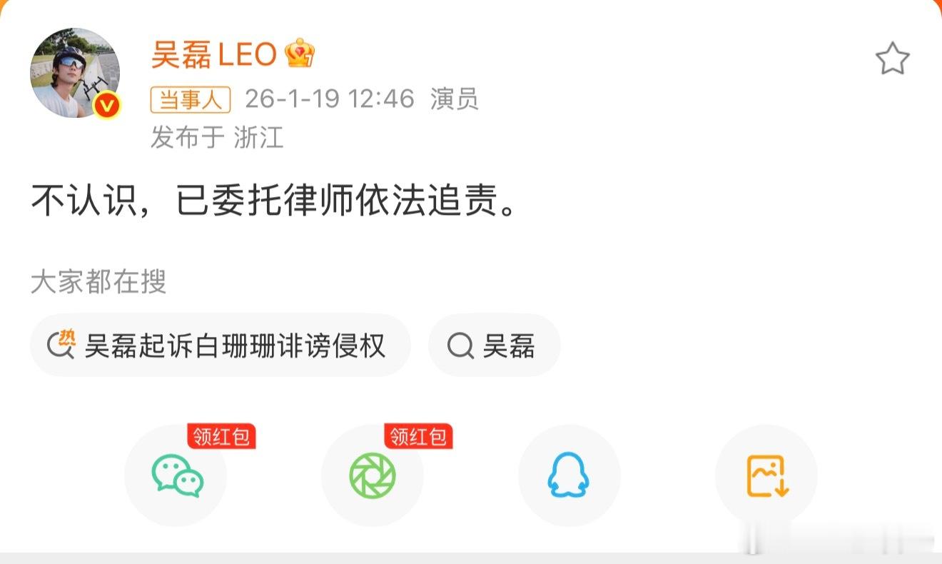 吴磊 白珊珊纯路人吃瓜🍉吴磊本人称不认识白珊珊 白珊珊还有所谓的“内娱名单”