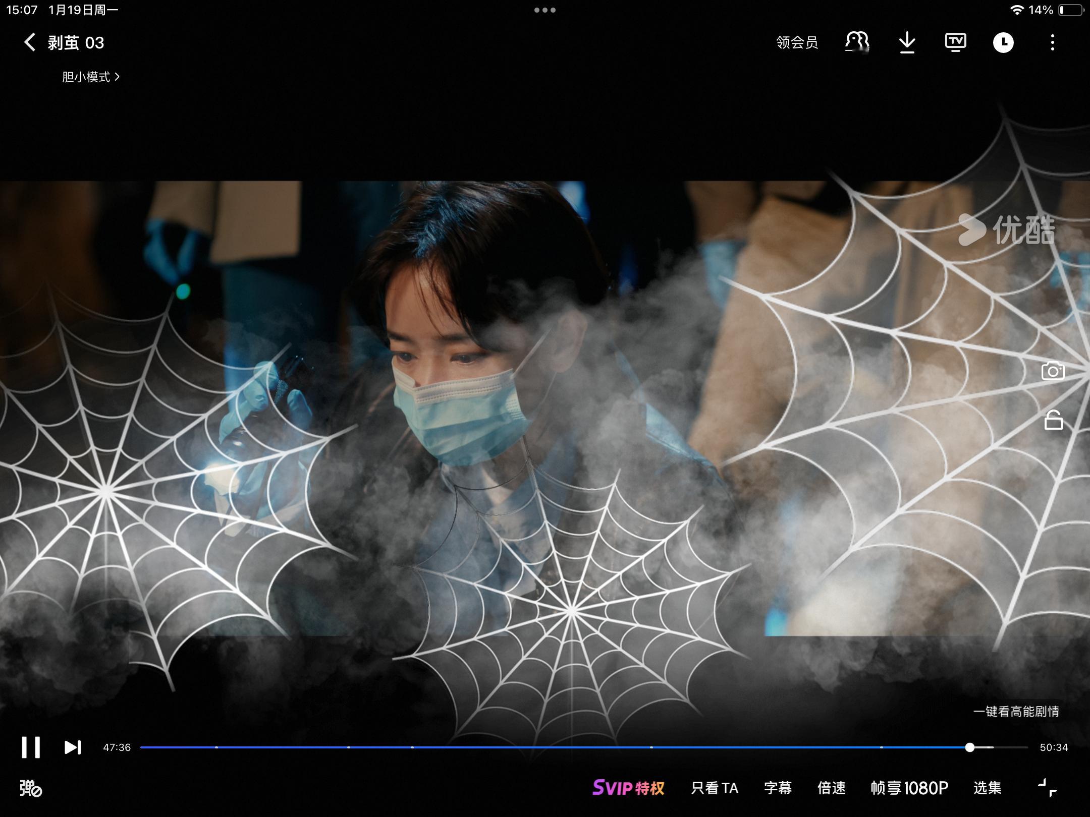 优酷的胆小模式,就是在一些画面上加一堆蜘蛛网🕸️