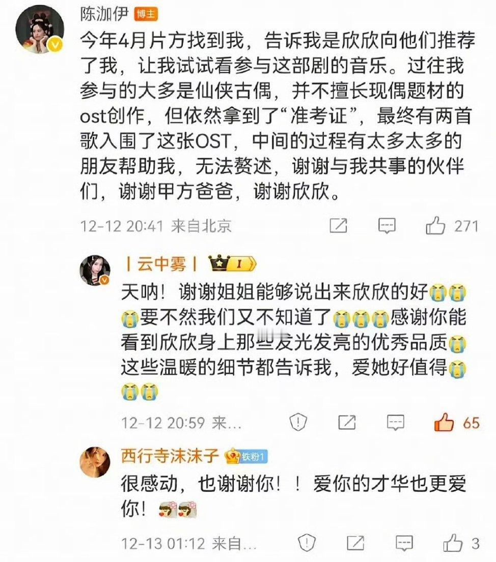 虞书欣是什么好宝宝,如果不是粉丝出来说都不知道,🐟悄悄做了这么多事。🐟有很多粉丝是做幕后的,很有能力,🐟会根据大家的实力给予推荐,让有能力的粉丝能有机会能在好的平台去竞争,让粉丝凭自身能力得到好的工作机会,是偶像和粉丝,也是伯乐和千里马,据说还有很多粉丝得到了帮助,她真的好好虞书欣云初令