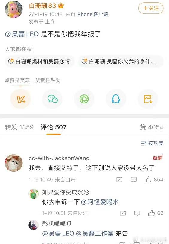 白珊珊艾特吴磊后,吴磊本人回应“不认识”。 此前,白珊珊大号爆料恋情,引发热议后