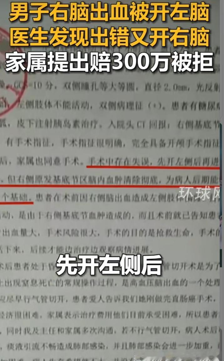 2023年1月31日清晨,包头的货车司机王先生准备出车时,在卫生间意外摔倒。他意识清醒却爬不起来,喝水还被呛到,妻子潘女士和女儿赶紧打了120。 送医后CT明确是右脑出血,当天11点王先生被推进手术室。本该开右脑的手术,医生竟先切开了左脑,清完少量血肿才发现弄错了。 赶紧缝合左脑、复位骨瓣,又重新开右脑完成手术,直到深夜10点多他才被送进ICU。术后复查发现左脑新增血肿,找外院专家一看,才戳破这“左右不分”的失误。 如今快三年过去,王先生左侧肢体瘫了,左手没知觉,左耳化脓畸形,说话也含糊,家人扶着才能走几步。医院之前每月给1.8万左右护工费,2026年1月突然停了。 潘女士自己身患癌症,按律师计算索赔300万被拒,医院还反过来起诉要160万医药费。涉事医生早已离职,包头卫健委虽已介入调查,但家属还在等一个公道。包头车祸 包头建设路事故