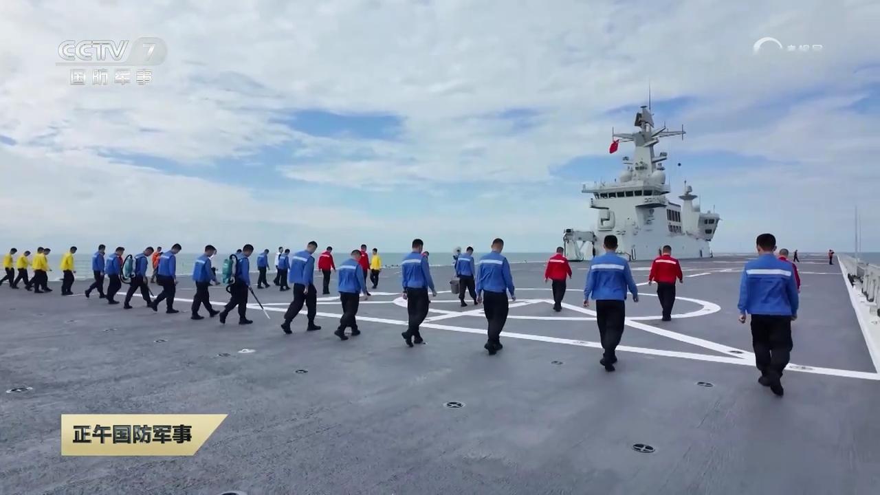 075湖北舰,飞行甲板异物检查区别于之前在航母上出镜(图2-3)的背负式吸尘器 烽火问鼎计划中国海军