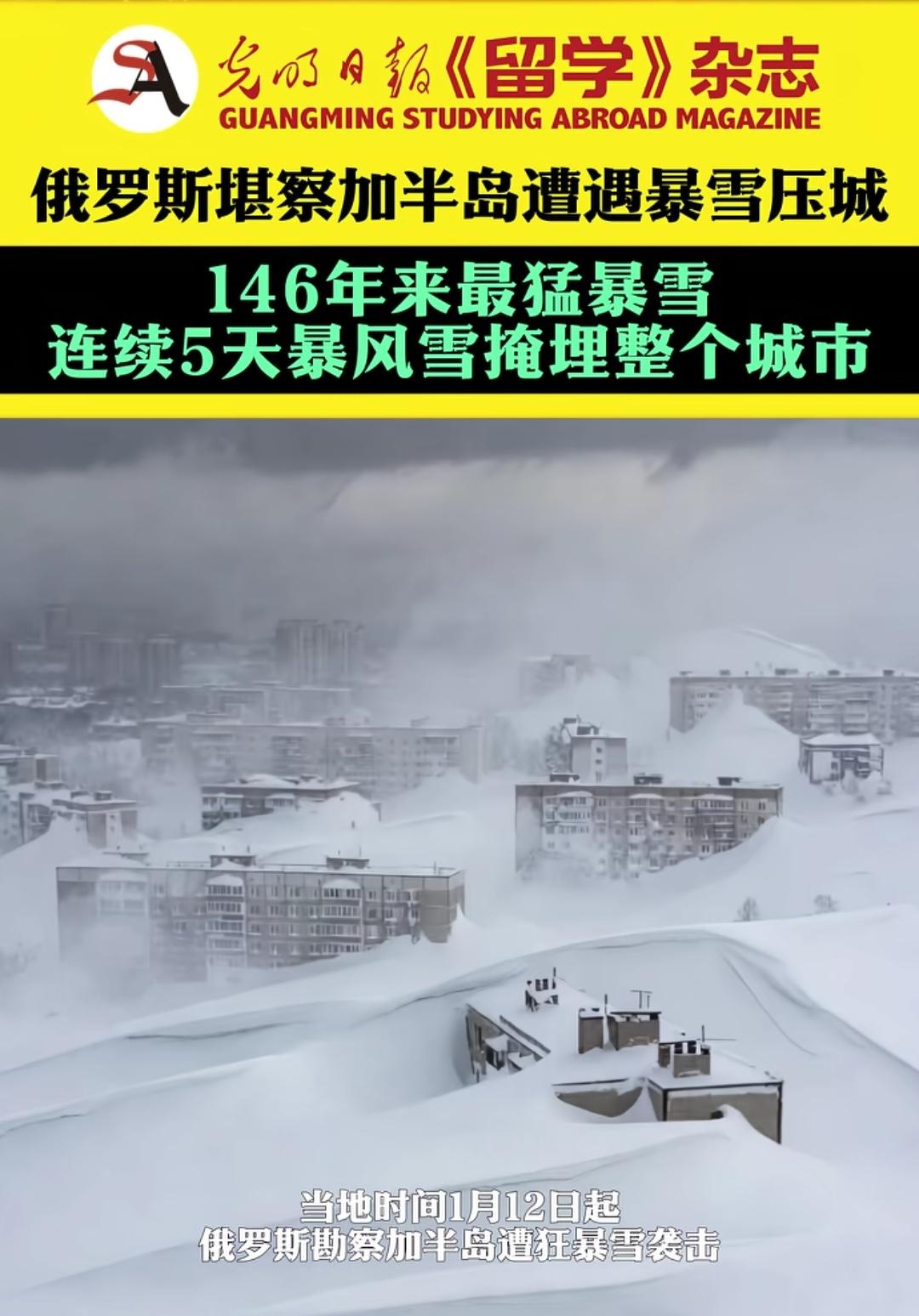 146年最强暴雪封城!堪察加半岛陷“雪域围城” 俄罗斯堪察加半岛遭遇近一个半世纪来最强暴雪,部分区域积雪深达15米,堪比四层楼高,创146年同期纪录 。强降雪伴随11级狂风,城镇被厚雪封锁,居民需破窗出行,道路交通瘫痪,多地宣布进入紧急状态 。 此次暴雪已致2人因屋顶积雪滑落丧生,气象部门持续预警雪崩风险,极端天气仍在持续影响当地民生 。