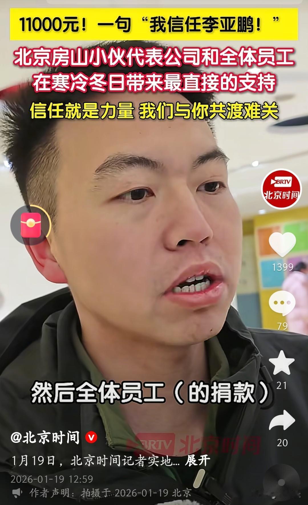虽然我不清楚李亚鹏创办的嫣然天使儿童医院到底遇到了什么坎儿,但光是看到这两个人的感人行为,我选择默默的支持李亚鹏。 一个是刚做完三次手术的孩子,把自己仅有的200元压岁钱捐了出来,妈妈红着眼眶说“这个创始人太伟大了”。这不是什么惊天动地的捐款,却藏着最真诚的感恩——如果不是李亚鹏的医院给了孩子希望,这家人哪能有这份心? 另一个是北京房山的小伙子,带着公司全体员工凑的11000元站出来,只说了一句“我信任李亚鹏”。在人人都怕惹麻烦的当下,这份不加修饰的信任,比任何辩解都有力。 我们总说“人心换人心”,能让受过帮助的人记挂、让素不相识的人撑腰,就凭这一点,我愿意相信李亚鹏做的是真事。不管医院现在多难,有这样的普通人在传递善意,就够暖了。