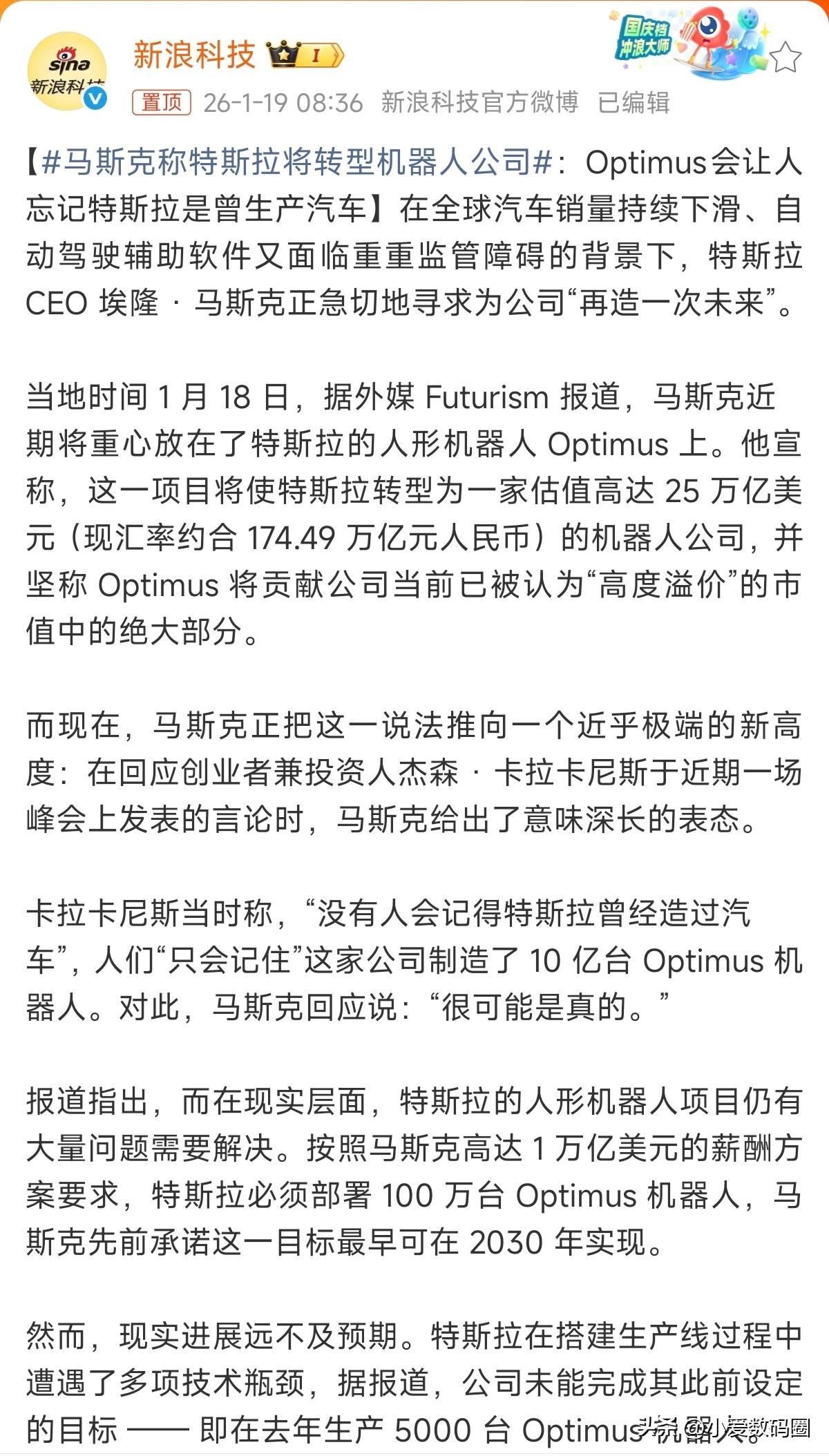 10 亿台 Optimus 机器人!特斯拉计划最快于2030年制造100万台机器人,5年后100万台,太魔幻了,如果计划成真,无人化进度会比想象的还快!当然,加上中国的,可能就是千万级别的人形机器人诞生,就问你准备好了吗?