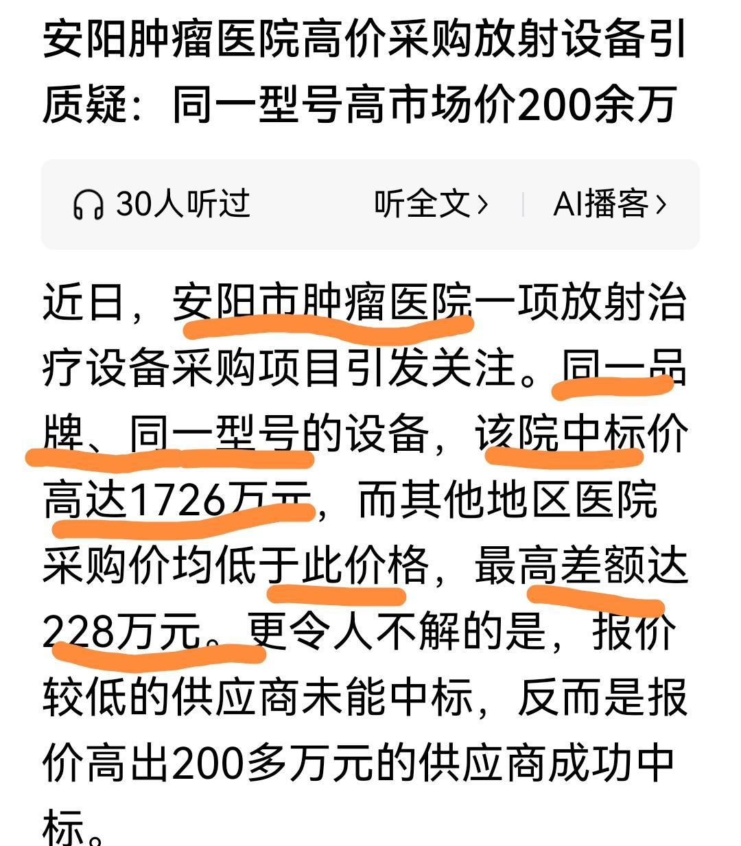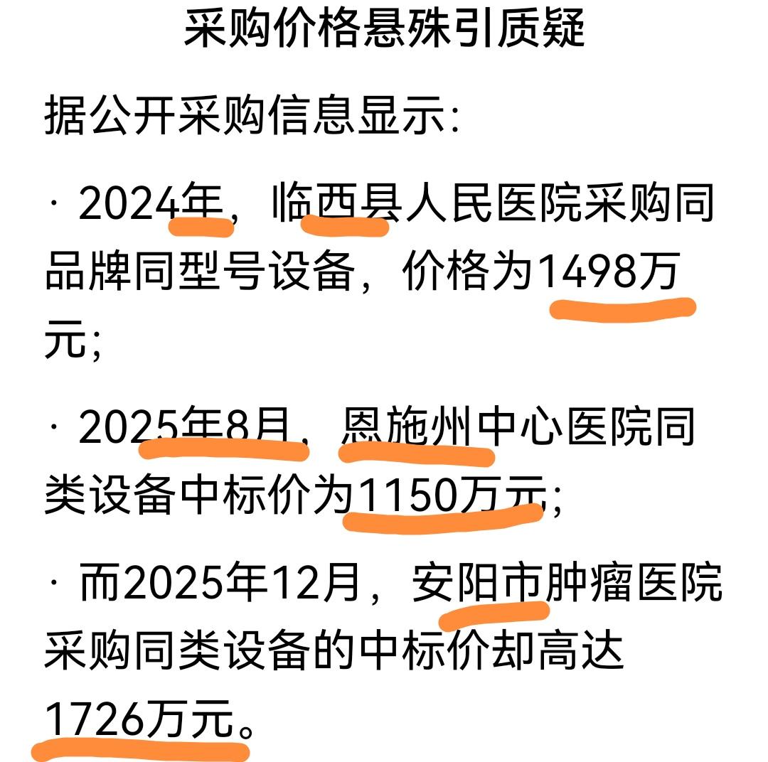 河南,安阳肿瘤医院,采购不应当是价低的中标吗? 为啥同品牌型号放射治疗设备,差