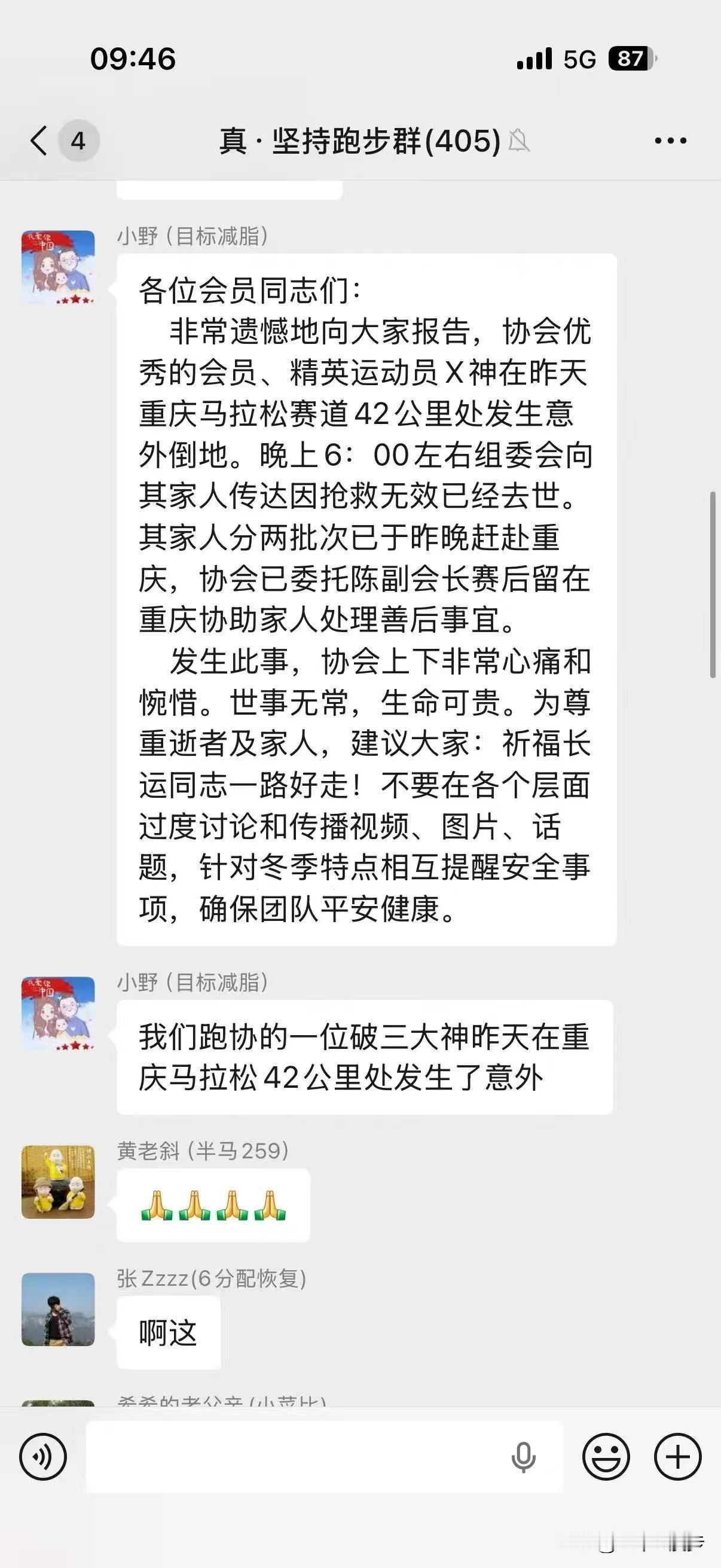 跑步虽好,但也千万不要过量,一定要了解自己的身体,量力而行!要保持跑步的初心,享受生活,享受奔跑带来快乐,以健康为目的,“破三”又如何? 人人都有一种侥幸的心理,总认为意外不会降临在自己身上,但是意外和明天哪个先来,我们谁也无法预知。 跑前一两天绝对不能饮酒,酒精只会加速血管的脆弱程度。 每次马拉松比赛的中途都会有几名跑友在救援,要么跑崩,要么抽筋,甚至还有失去知觉,这些都值得跑友们警醒! 跑步