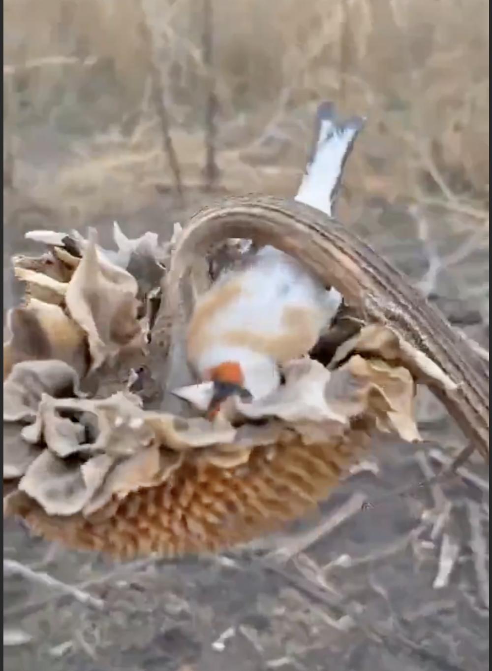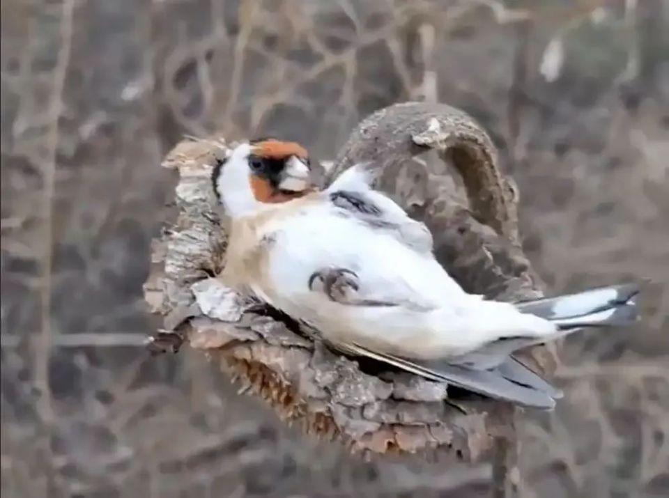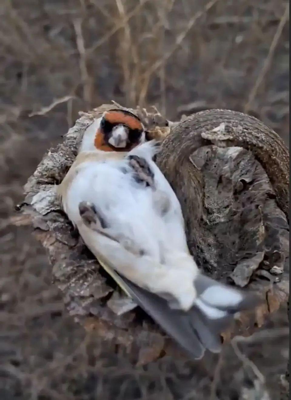 他见过鸟躺着睡觉吗? 躺着,双脚、肚皮、头朝天,背躺在稳定的向日葵、树叶上,就像我们人一样。 躺着睡的好处,解放双脚,吃饱了,躺着还不会压着肚子,这样睡舒服。 金翅雀就是会躺着睡的鸟,它通常只会在很安全的环境下,躺着睡觉。 一般的鸟都是站着睡觉,站着睡双脚负重整个身体,很累也不舒服。 还有一种鸟,有脚等于无,落地就难再飞行,这种鸟一边飞一边睡,这种鸟一生是最悲凉的。 金翅雀是最会享受鸟生的鸟,就凭它会像人一样躺着睡,友友们,你们觉得呢!