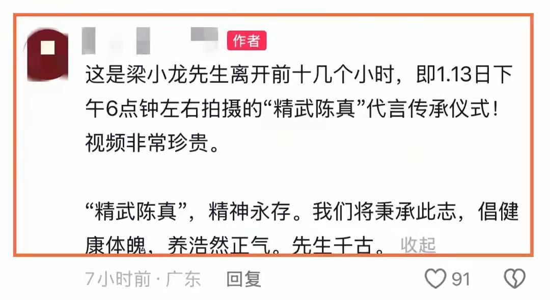 梁小龙去世过程!凌晨两点半痛到无法忍受,面色发青、嘴唇发白,但意识清楚紧急送往医院,早上6点身体有好转,梁小龙闹着要出院,下午竟因抢救来不及去世,与二婚妻子生的一儿一女在澳洲读书没有见到最后一面。 梁小龙这些年为了供一儿一女在澳洲上学,起早贪黑地工作,1月14日去世,1月13日下午6点,他还在拍摄“精武陈真” 代言传承仪式。 梁小龙还打了一套拳,可仔细看他的嘴唇已经发紫了,脸色也是亳无血色。