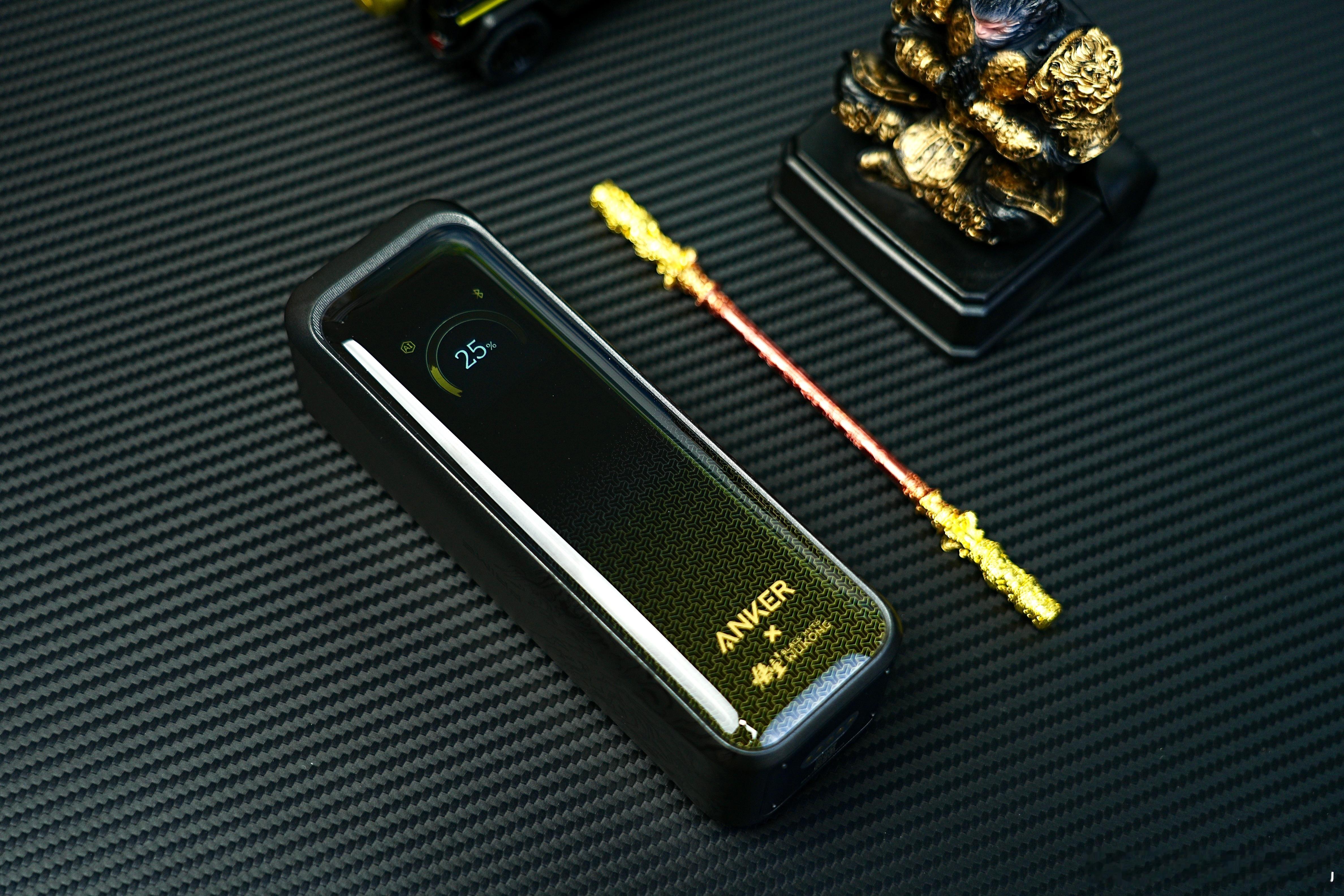 ANKER如意棒充电宝满血上手大家有没有跟我一样,出差需要带笔记本和一堆手机出门的,有时候一个充电宝根本不够用,尤其是在露营、咖啡馆跟客户谈事情的时候,还要用电脑修改方案,不能断电需要边用边充,安克这个如意棒大容量充电宝带在身边就很安心,而且还是和黑神话悟空联名的,机身采用2.5D浮雕工艺,特别精致,祥云图腾质感满满,镜面锁子甲纹很细节,加上交互按键和数显定制UI,尽显科技美学。20000mAh超大容量电池不仅可以给手机等设备供电,还可以给笔记本平板供电,能实现220W三台设备顶速快充,单口至高可达140W输出,半小时可给MacBook Pro充电50%,内置德州仪器BMS芯片,有效保护电池安全,妥妥儿的六边形战士,值得一提的是,还可以自选底座,闲时放在桌面底座充电更加方便,出差或者搞搞创作,有这一个就够了!