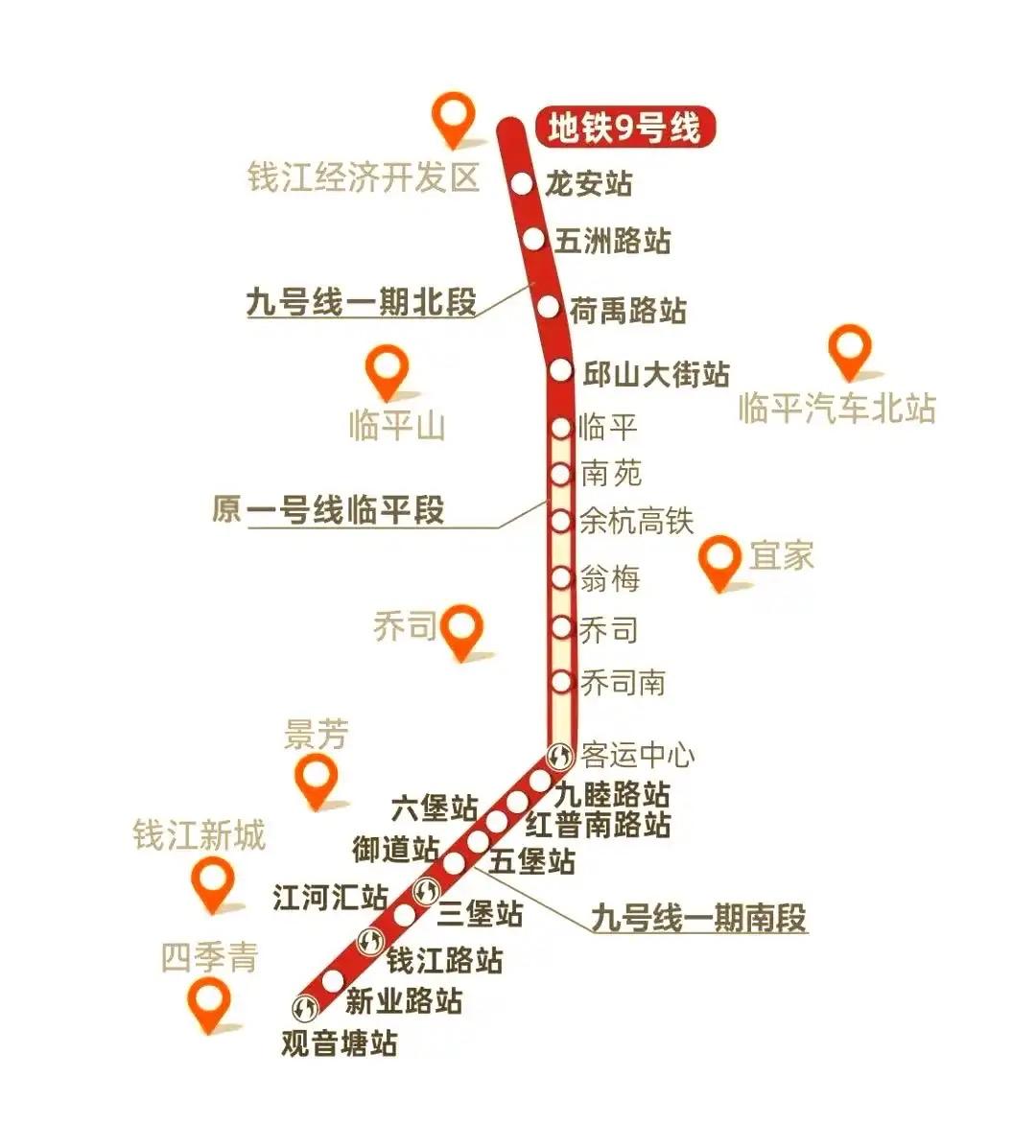 杭州地铁9号线二起 杭州地铁9号线二期(南起龙安站(不含),北至塘栖站),主要沿荷禹路、康泰路、港北路、绿荫街敷设。这条线路将连接临平塘栖与主城区,加强东湖新城与主城的联动,对区域发展很有帮助。 ‌9号线二期位于中国杭州市临平区,‌南起已运营的9号线一期龙安站(不含),北至塘栖站‌,线路全长约10公里(10.1公里),‌全部为地下敷设‌,共设置7座车站,且‌全线无换乘站‌。‌线路‌主要沿荷禹路、康泰路、港北路、绿荫街敷设‌。根据2026年1月公布的拟定站名方案,7座车站依次为:‌康信路站、兴元路站、康泰路站、泉漳站、兴盛路站、港北路站、塘栖站‌。 想象一下,以后去塘栖古镇游玩就更方便了,坐着地铁很快就能到,品尝当地美食、感受水乡风情。而且对区域发展意义重大,能带动沿线经济,促进资源流动。不得不说,杭州这地铁规划太牛了,期待9号线二期早日开通! 杭州地铁 杭州地铁路线图 杭州地铁线